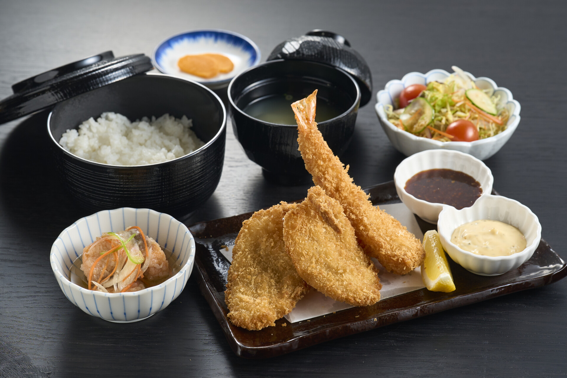 フグ海老MIXフライ定食<唐戸海鮮小屋バーベキュー侍>