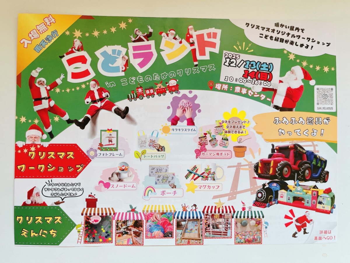 花農丘公園(北九州市立総合農事センター)で12月13日と14日の2日間、「こどランドinこどものためのクリスマス」が開催されます。入場無料で、雨天決行です。