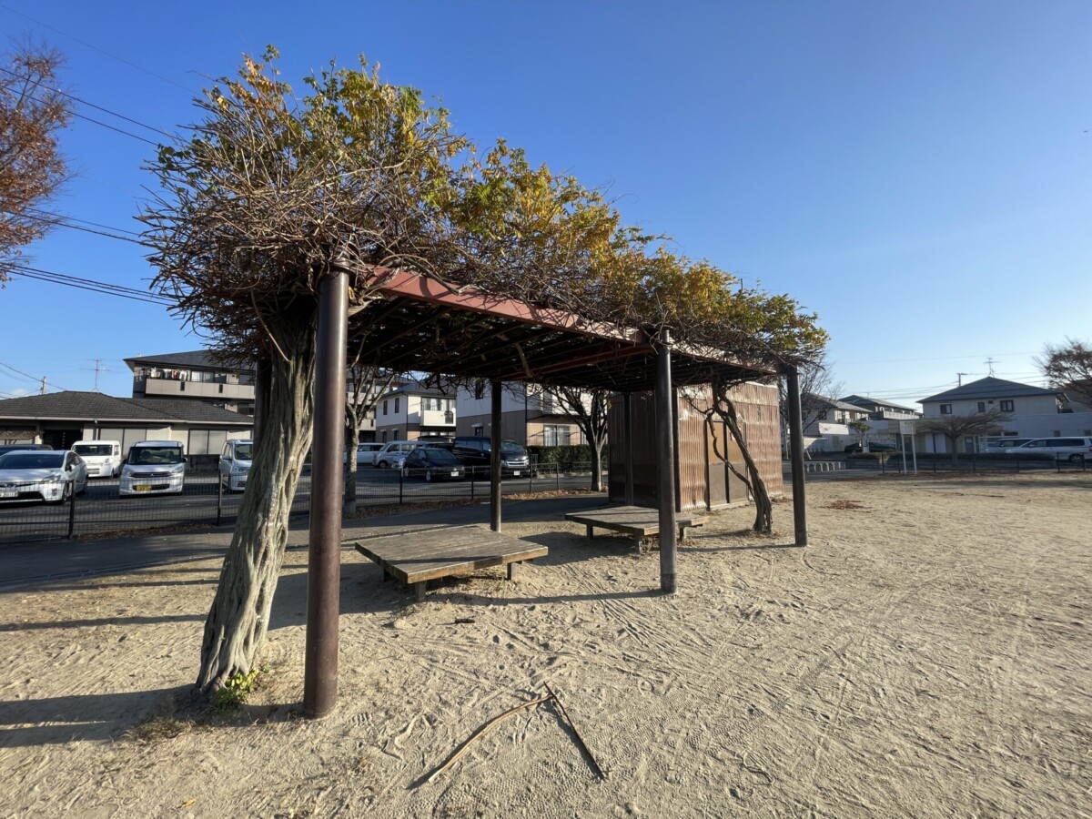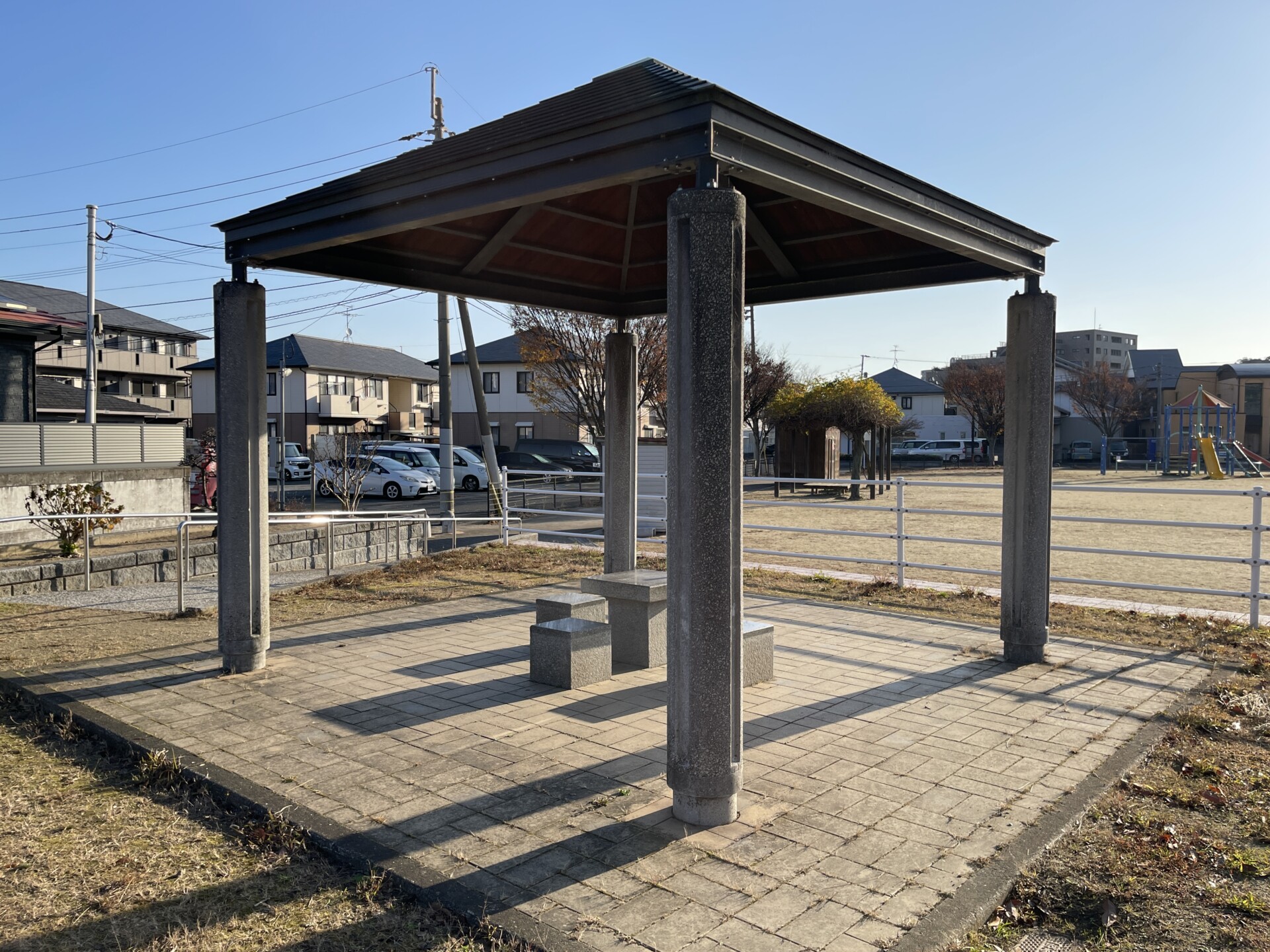 公園内には東屋もあり、屋根付きのしっかりとしたテーブルと椅子が設けられているため、ゆったりと休憩できる空間になっています。