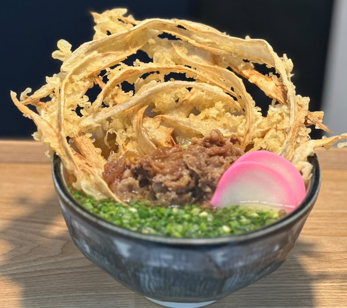 画像は「肉ごぼう天うどん」小倉北区にある「うどん 一勝」では、津田屋官兵衛で修行した店主が思いを込めた一杯を提供。