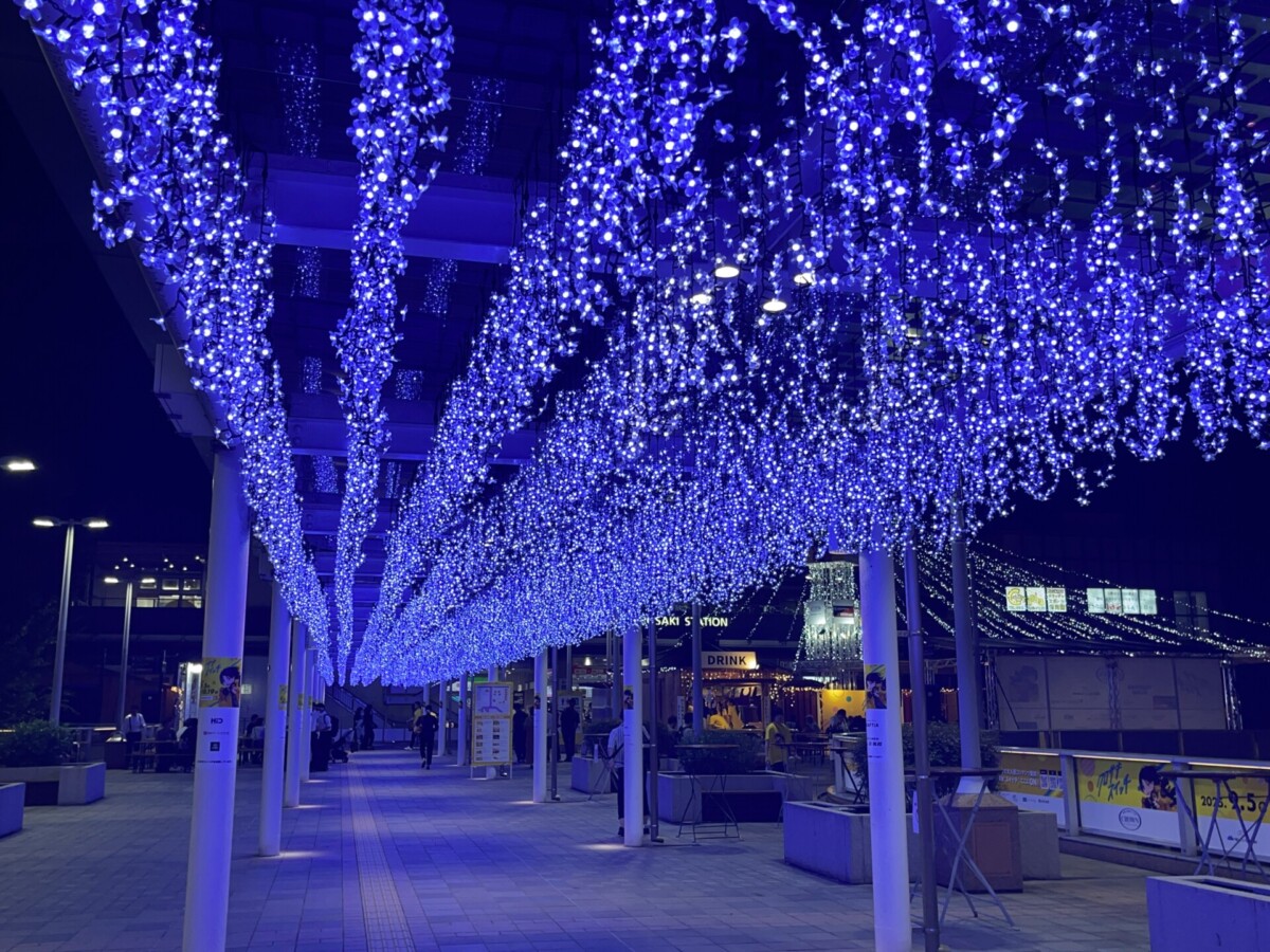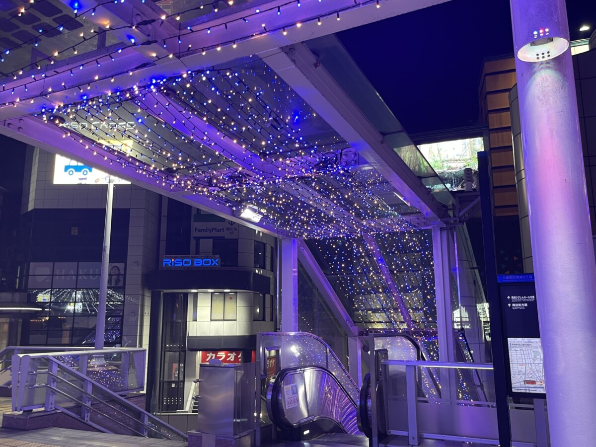 黒崎駅前ペデストリアンデッキでは、「吉祥寺の藤棚」をモチーフにした幻想的な藤棚イルミネーションが輝いていました。
