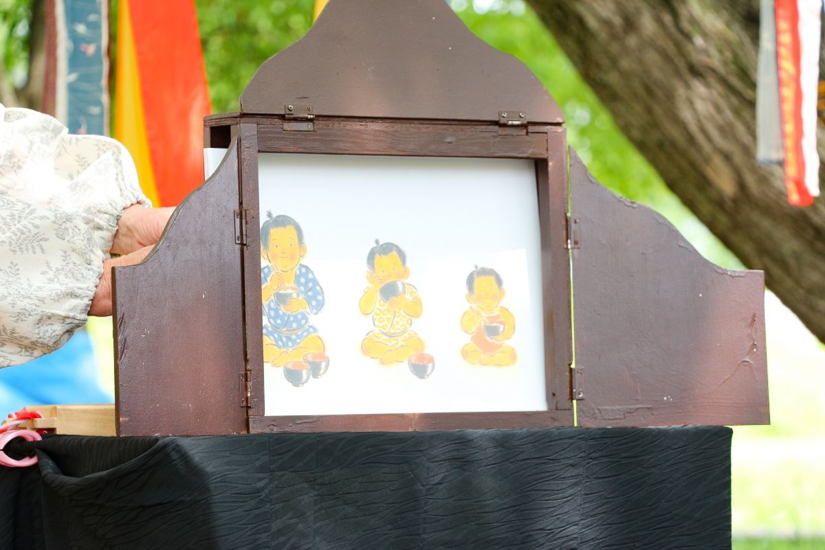 笑顔広め太郎一座による「紙芝居と絵本の読み聞かせ」が行われます。