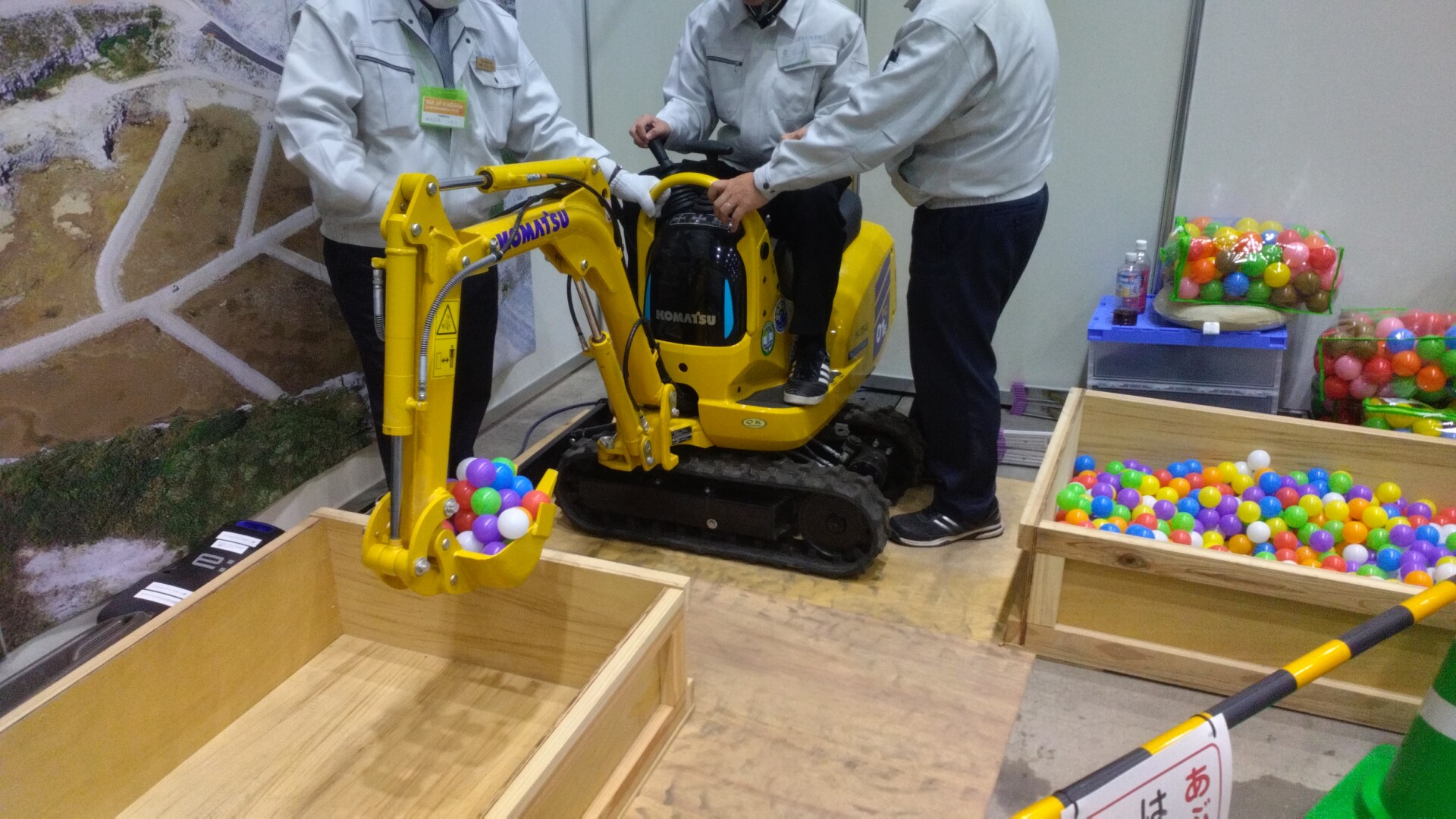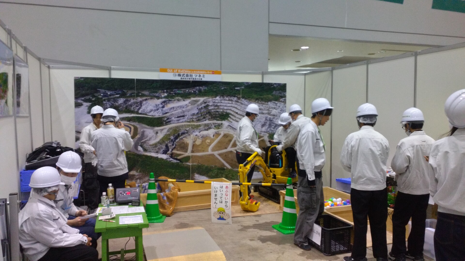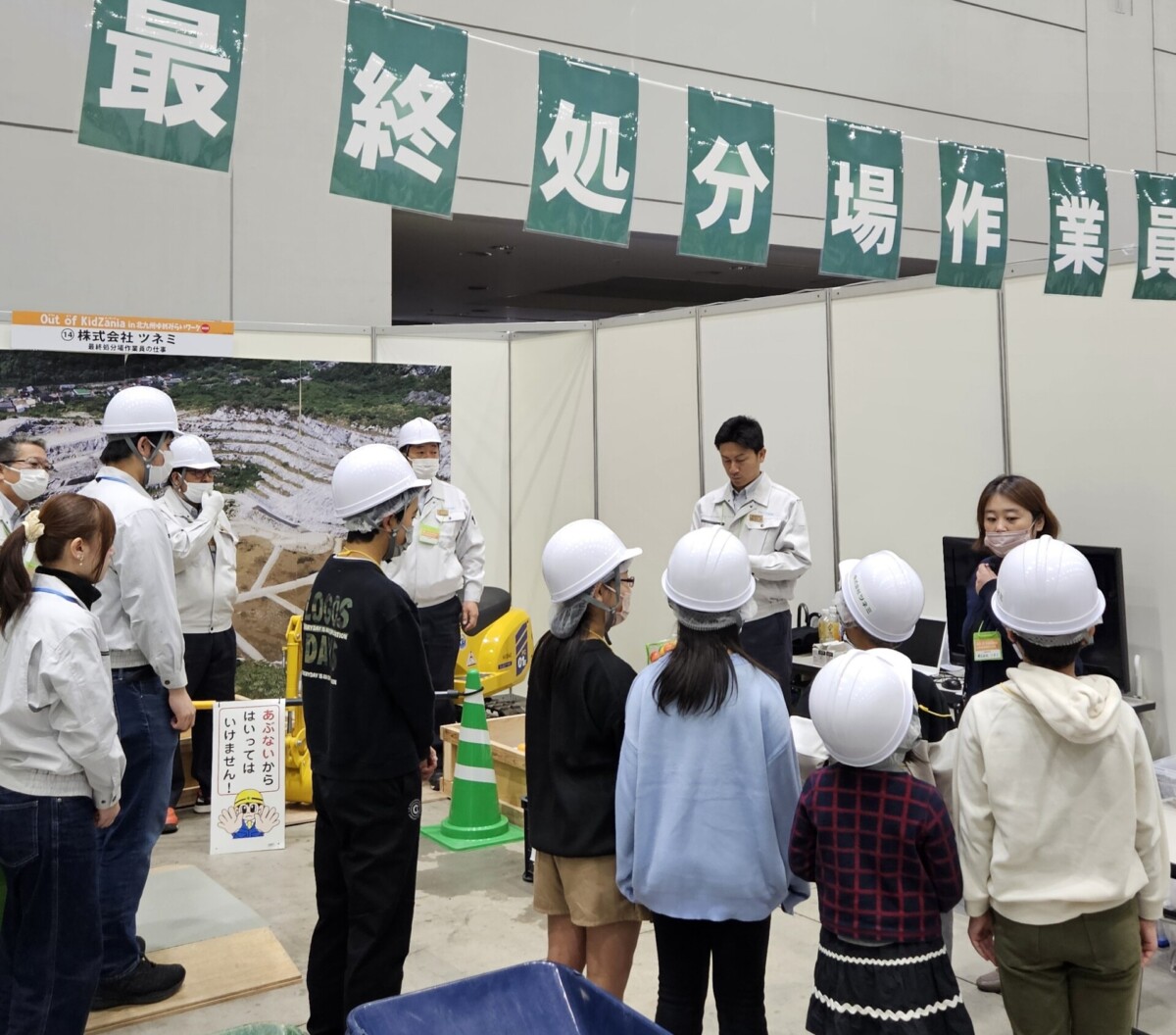 株式会社ツネミのブースでは、子どもたちに産業廃棄物の最終処分場作業員の仕事を体験してもらいました。