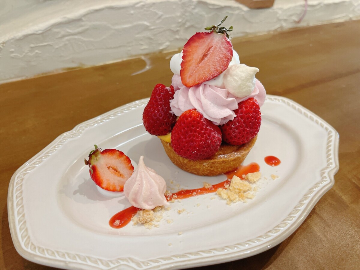 苺クリームと苺ジャムが甘さを引き立て、メレンゲのサックとした食感がアクセントになっていました。