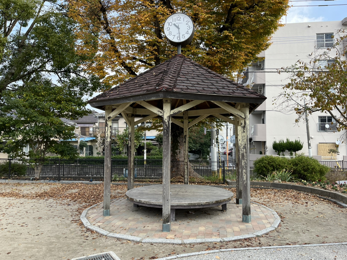 また、円形の東屋の上には大きな時計が設置され、遊びに夢中になっても時間を確認できます。