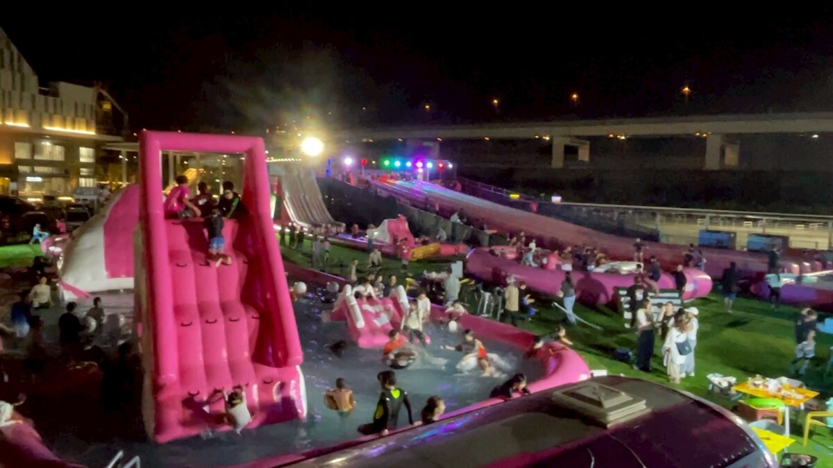 今年は35メートルのスライダーに加え、50メートルのスライダーも登場。20メートル×20メートルの巨大プールや流れるプールなど昨年より進化したそうです。