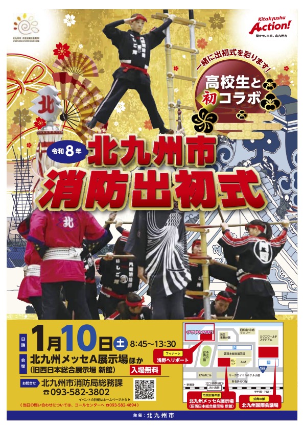 市民の防火・防災意識向上を目的とした「令和8年北九州市消防出初式」が1月10日、北九州国際会議場と北九州メッセなどを会場に開催されます。