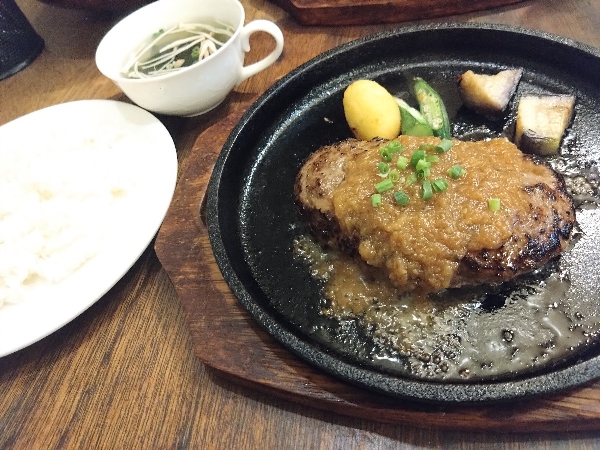 店主・角田さん一押しのメニューに自家製ハンバーグがあります。ソースは和風・デミグラスソース・チーズの3種から選べ、汁物はコンソメスープか味噌汁から選べます。