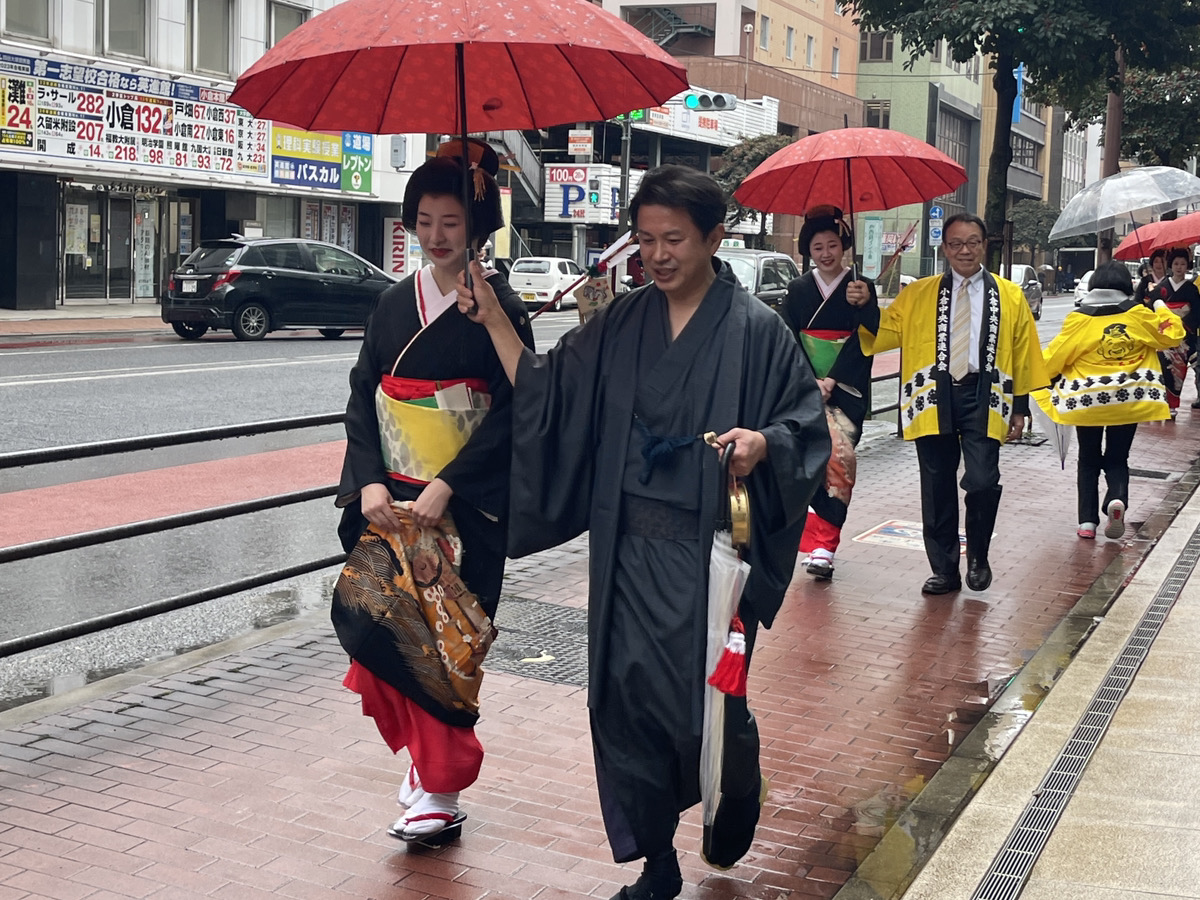「十日ゑびす祭」は昭和23年から続く行事。艶やかな芸者姿のミス十日ゑびすと世話役が、小倉都心部を練り歩きます。