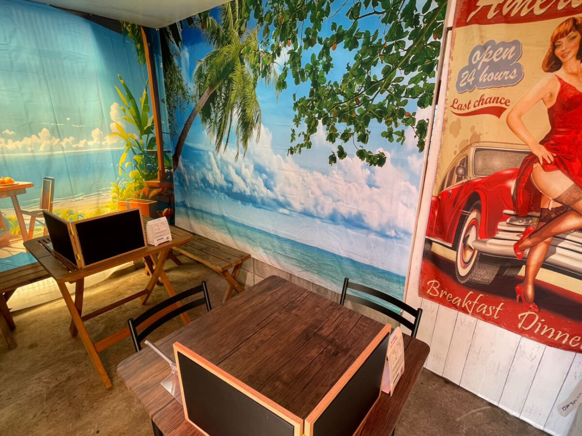 店内にはフリースペースも設けており、4人掛けと2掛けのテーブルがあります。