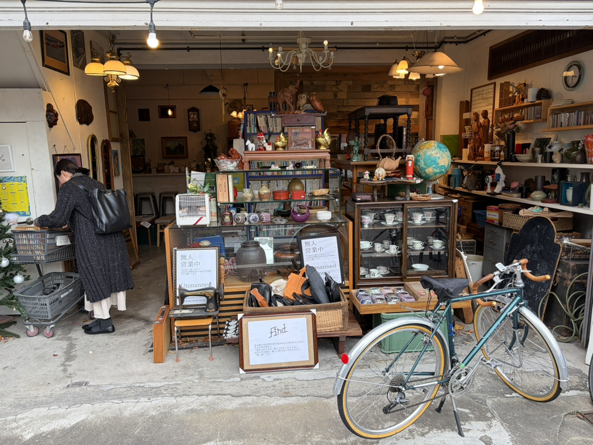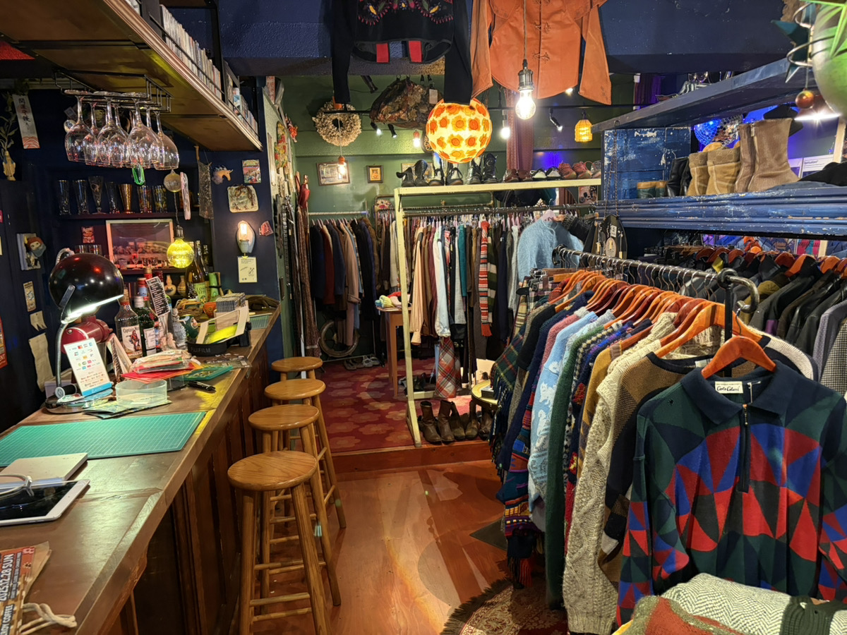 2階にある古着店「Bloomy Days Vintage」にはシャツ、セーター、ジャンパー、コート等、色取り取りのヨーロッパ製の古着が並びます。