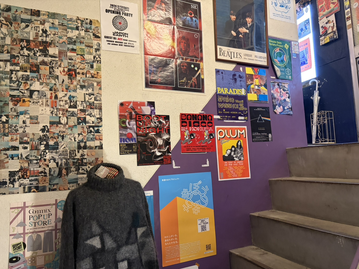 音楽イベントや哲学対話等の紹介もしていて、階段室の壁には様々なチラシ・ポスターが掲示されています。