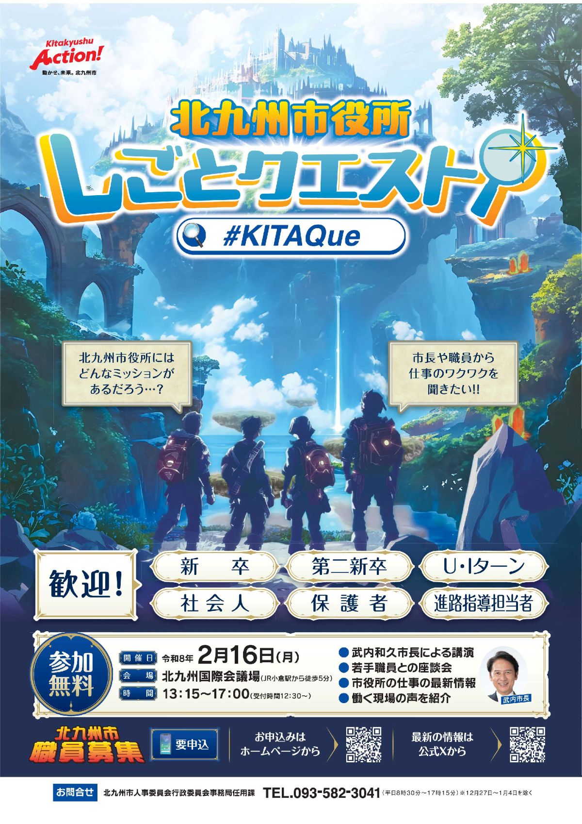 北九州市は2月16日、北九州国際会議場(北九州市小倉北区浅野3-9-30)で市役所志望者向けのセミナー「北九州市役所しごとクエスト」を開催します。