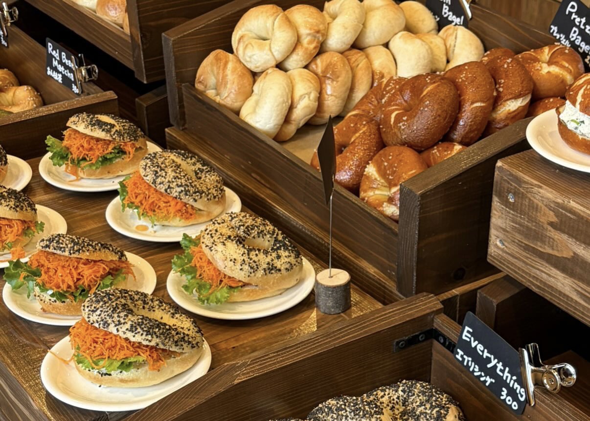 日本ではあまり見かけない、ネギクリームチーズを挟んだプレッツェルベーグルや、中にポテトサラダを入れて上にチーズをのせたベーグルなど、個性的で新しい味わいが特徴だといいます。