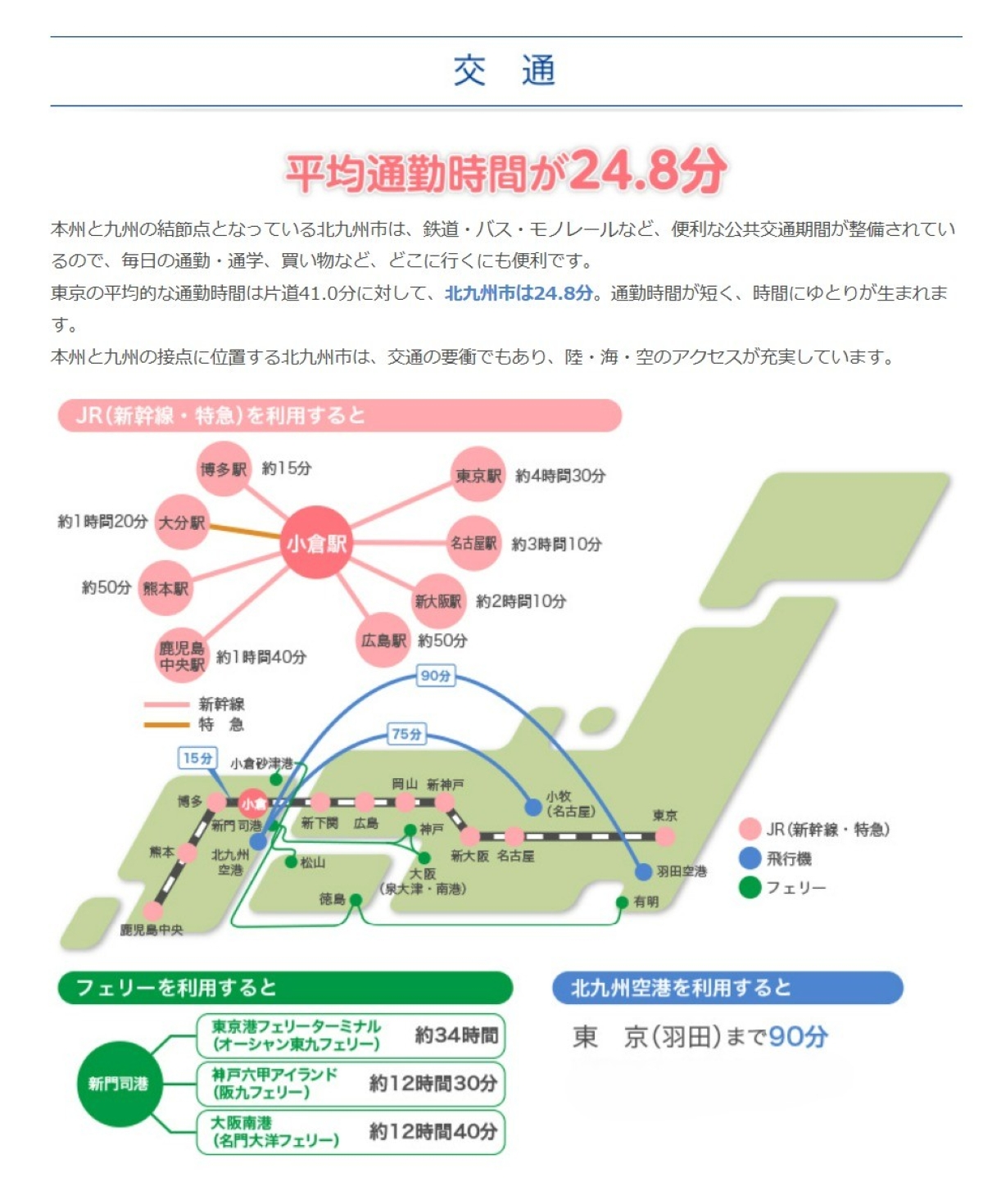 北九州市は、交通利便性が高くストレスの少ない通勤が可能な都市といわれます。