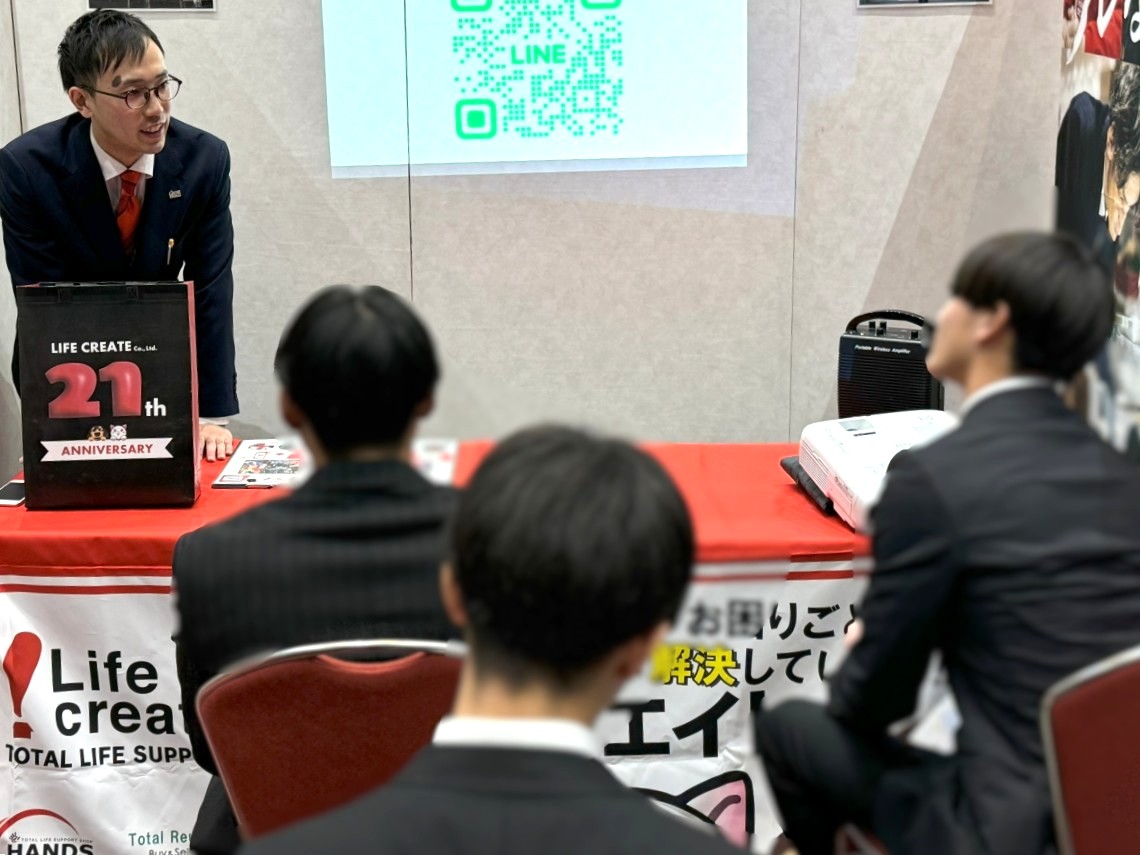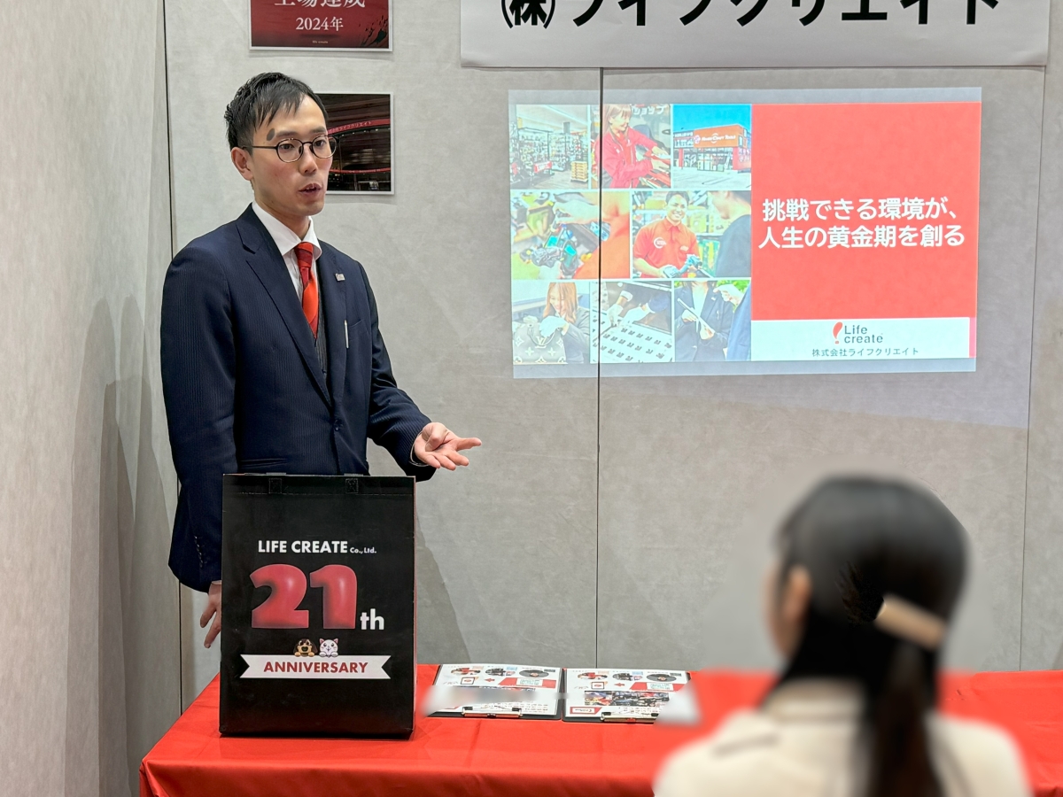 就職活動の合同説明会というと、「どの会社を選ぶか?」に意識が向きがちですが、1月17日に開催された「スポナビキャリアセミナー」の株式会社ライフクリエイトのブースは、少し違っていました。
