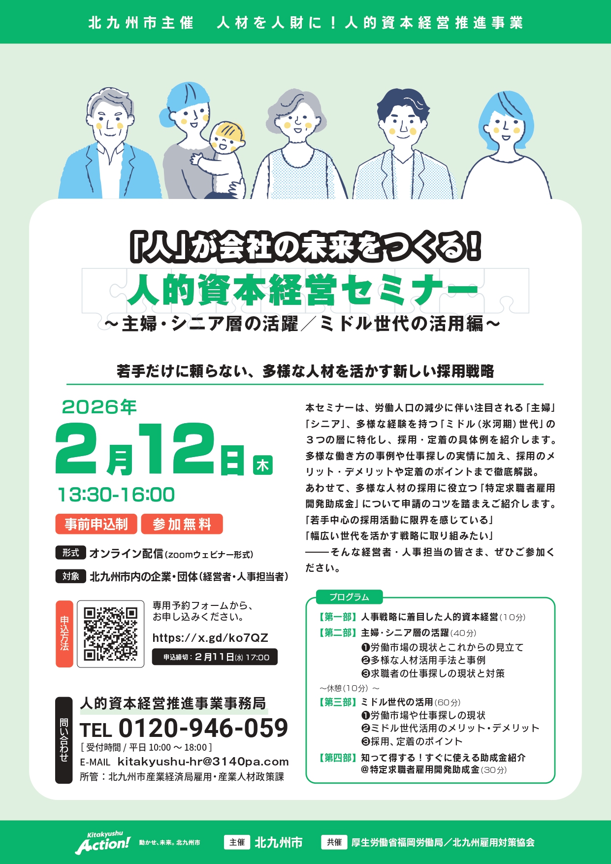 【2月12日】北九州市主催 企業向けセミナーを開催<若手だけに頼らない、多様な人材を活かす新しい採用戦略>/北九州市 産業経済局 雇用・産業人材政策課