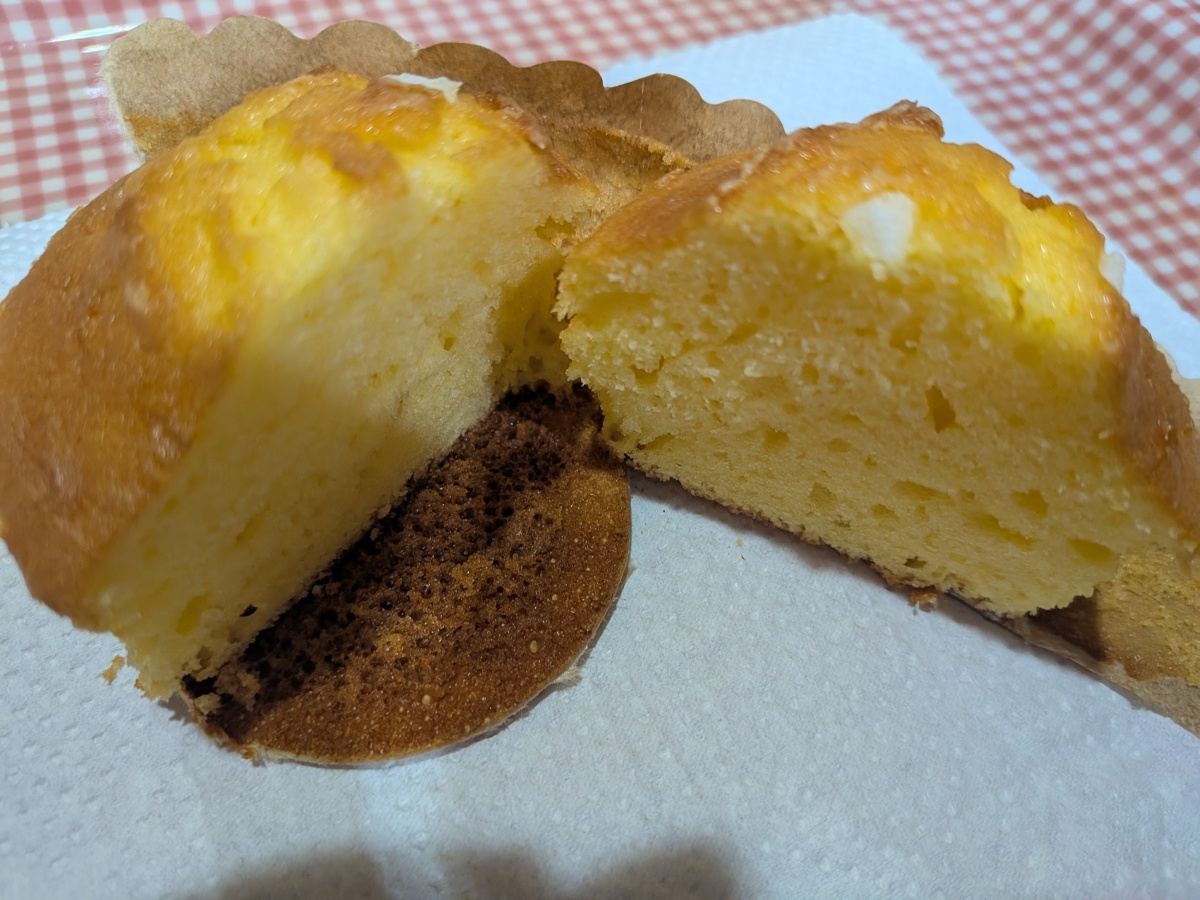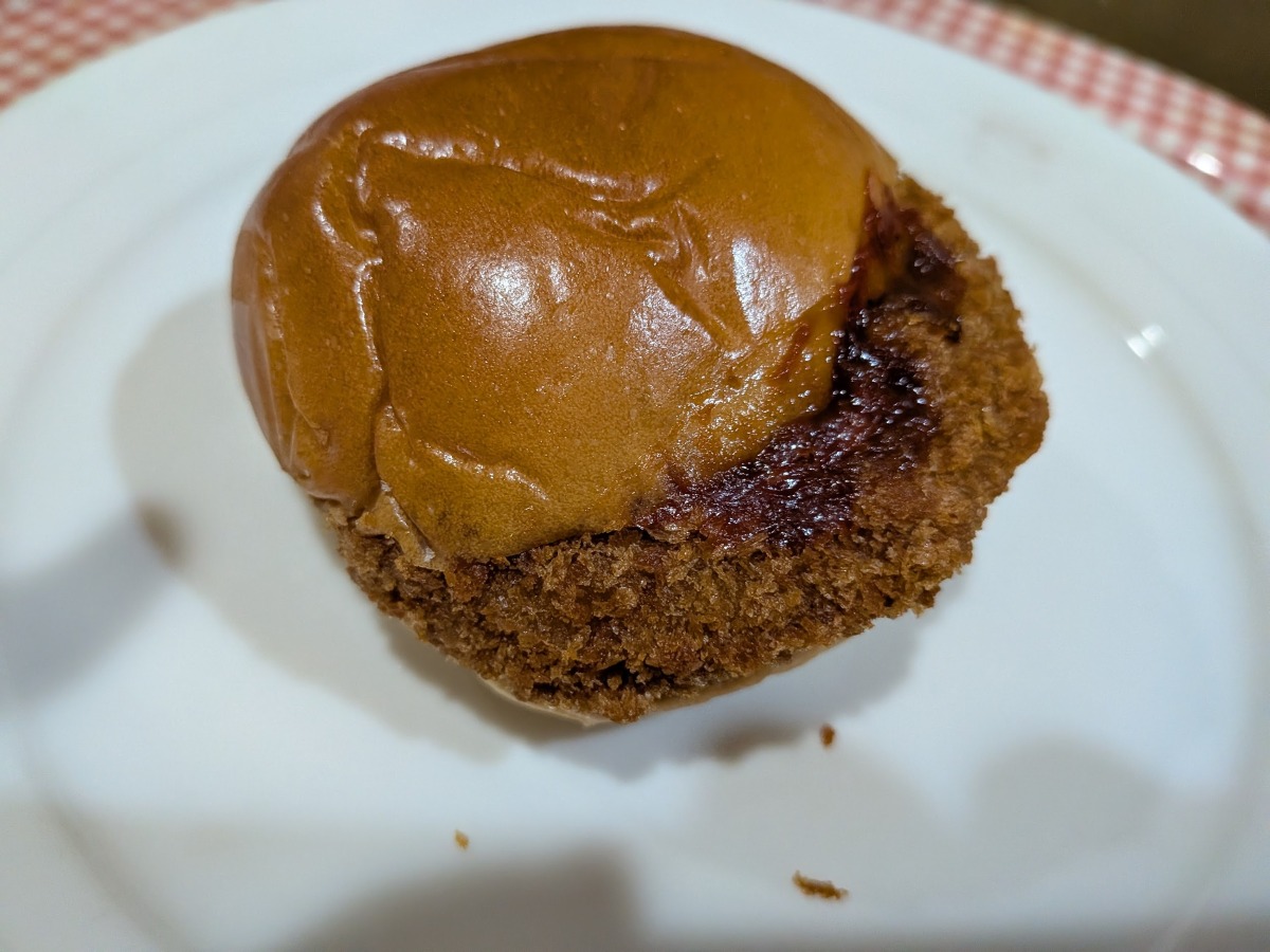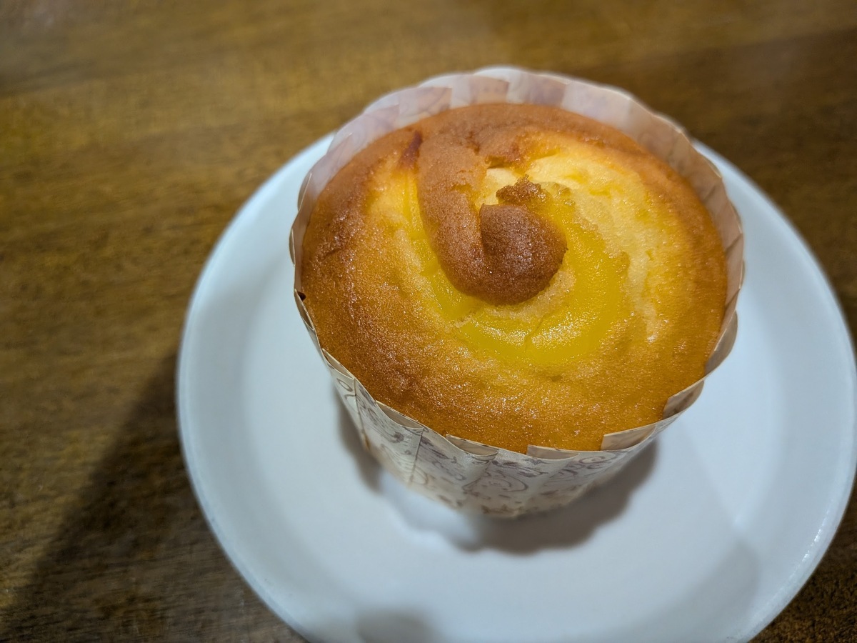 プリンマフィン」(194円)は、しっとりした生地の中にカスタードクリームとカラメルソースが入り、ひと口食べると口の中にプリンのような味わいが広がります。