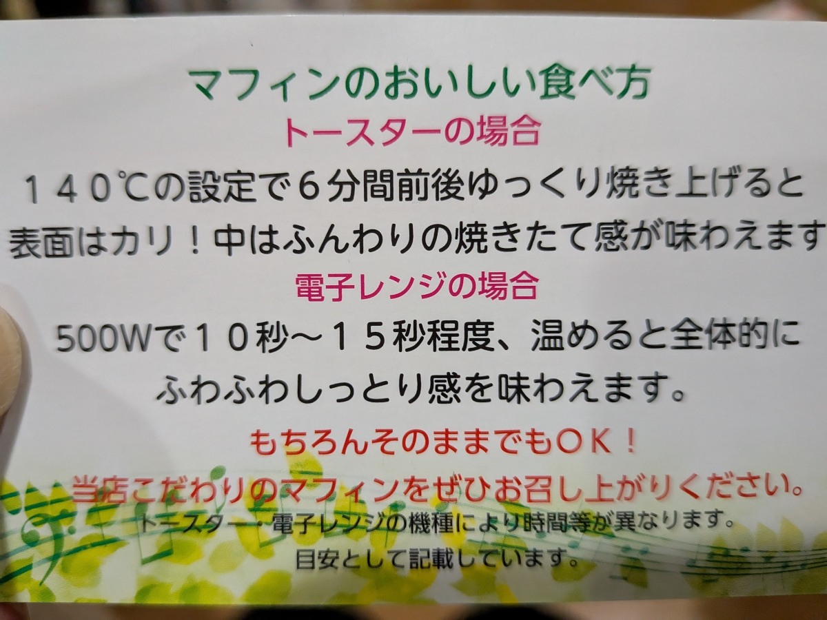 Instagramやレジに置いているカードにはマフィンの美味しい食べ方が紹介されています。