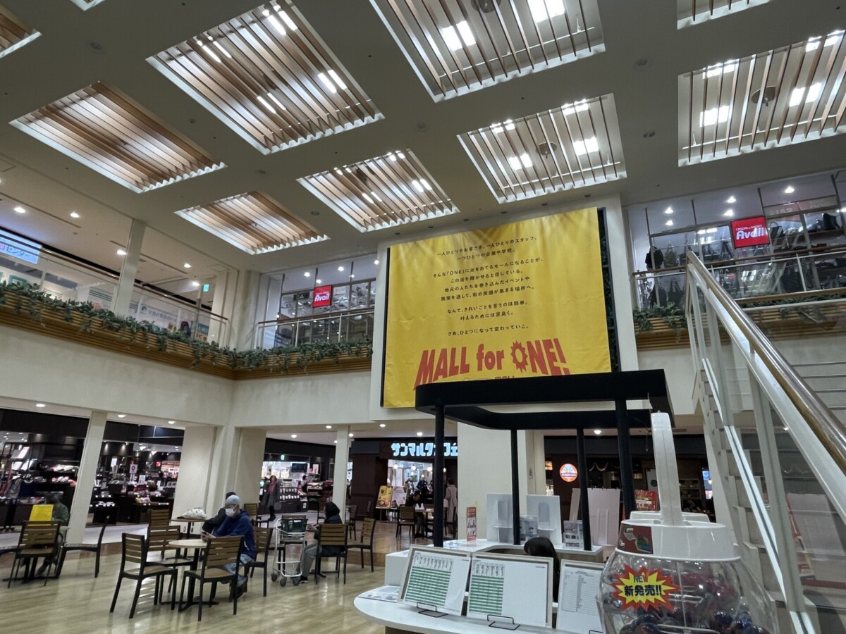 (画像はサニーサイドモール小倉の「ひまわり広場」)スイーツ店は、新鮮な果物を特製の求肥で包んだフルーツ大福を販売する「嵐山口果実大福 楓」や、バターのかわりに国産米油を使用したマフィン・クッキーを販売する「CLICK」などが登場。
