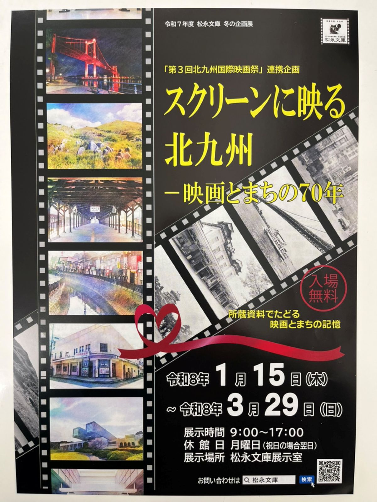 企画展は、第3回北九州国際映画祭との連携企画として実施され、市内各地のロケ地に注目し、映画とまちの約70年の歩みを紹介する展示が行われます。