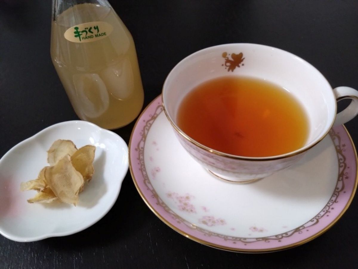 生姜チップスや生姜シロップは、飲み物の風味づけとしても利用可能。紅茶に生姜チップスを加えると、砂糖を入れなくても甘みと生姜の風味が感じらました。