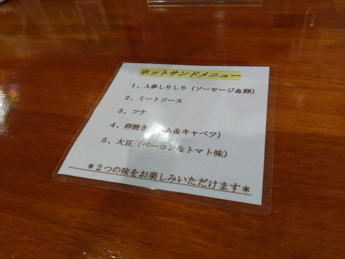 この日は、「ホットサンドセット」を注文。ホットサンドは5種類から2種類選ぶことができ、1番人気という「人参しりしり(ソーセージ&卵)」と、「卵焼き(ハム&キャベツ)」を選びました。