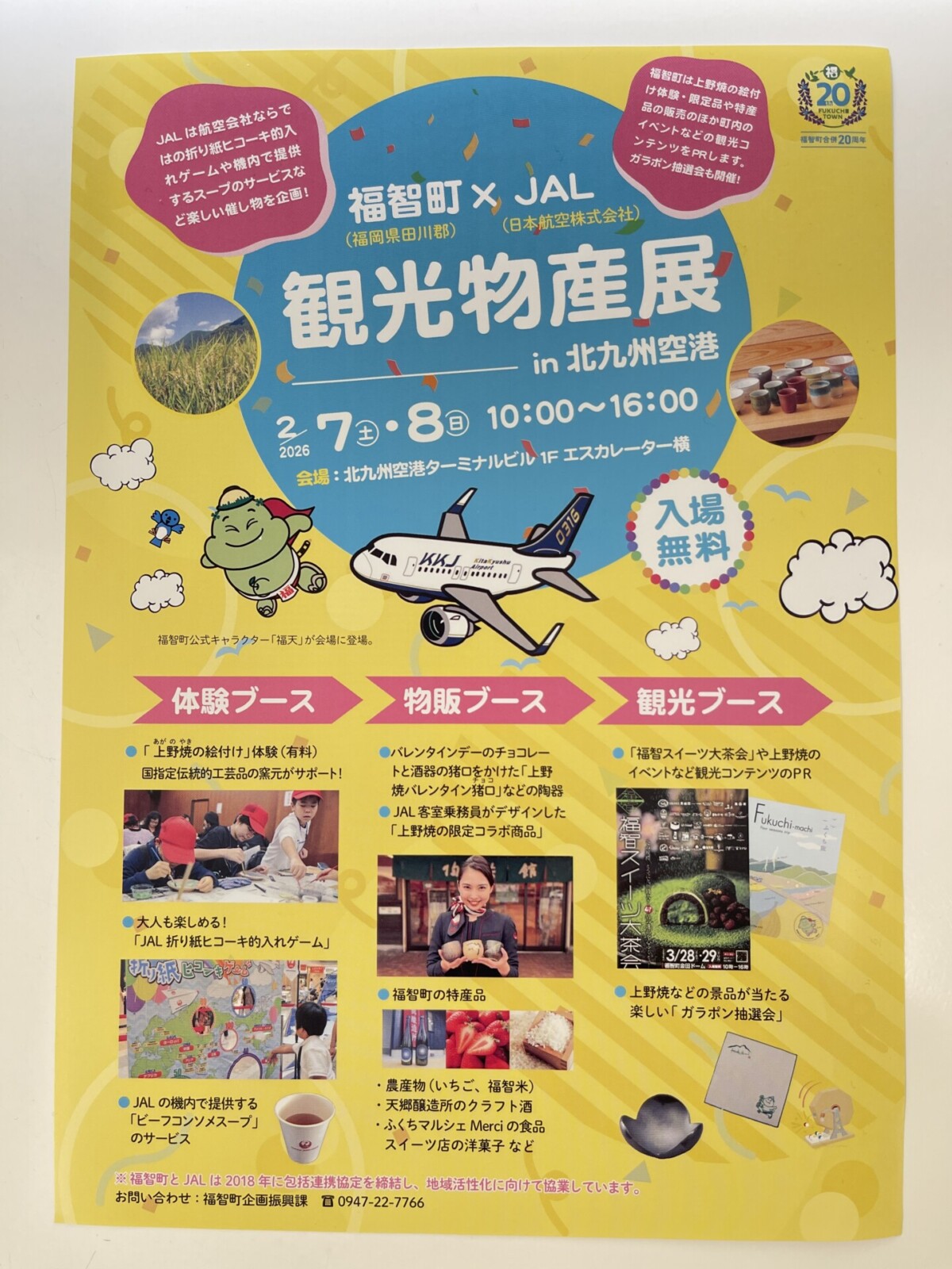 「観光物産展 in 北九州空港」は、福岡県福智町とJALのコラボによるイベントです。