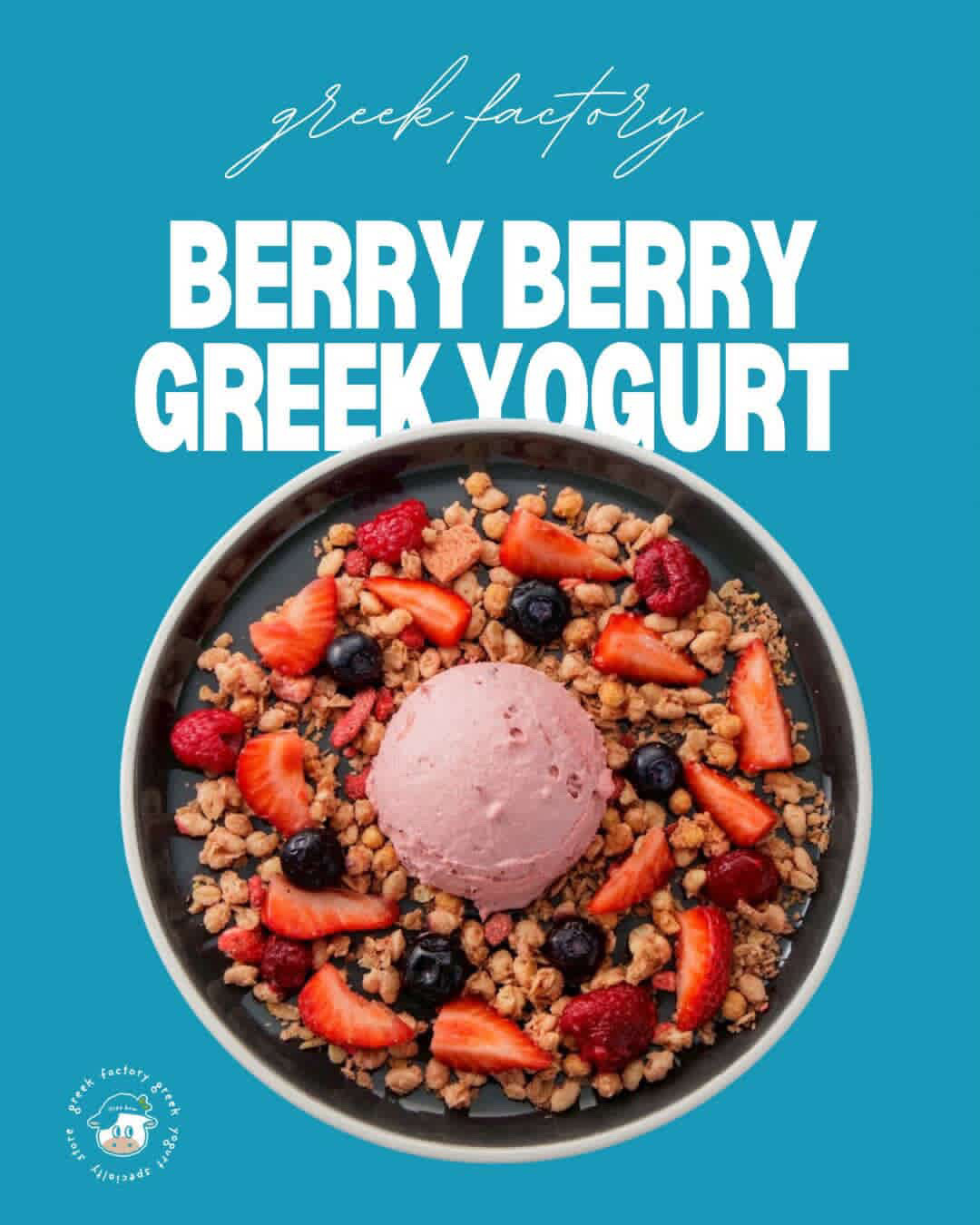 ベリー・ベリーグリークヨーグルトは、甘酸っぱいラズベリーとブルーベリー、みずみずしいいちごを贅沢に使用しています。