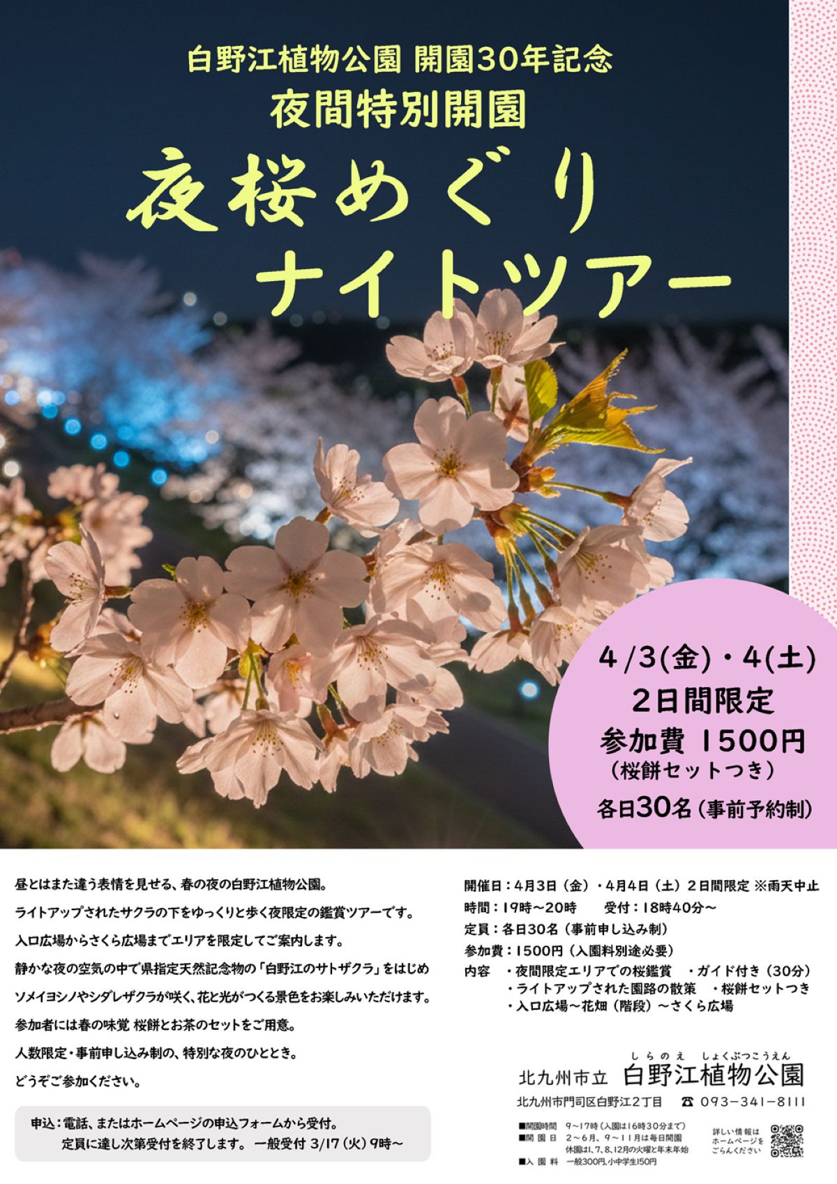 北九州で春を満喫! 白野江植物公園30周年記念イベント「さくらまつり」開催 マーケット&夜桜ツアーPR