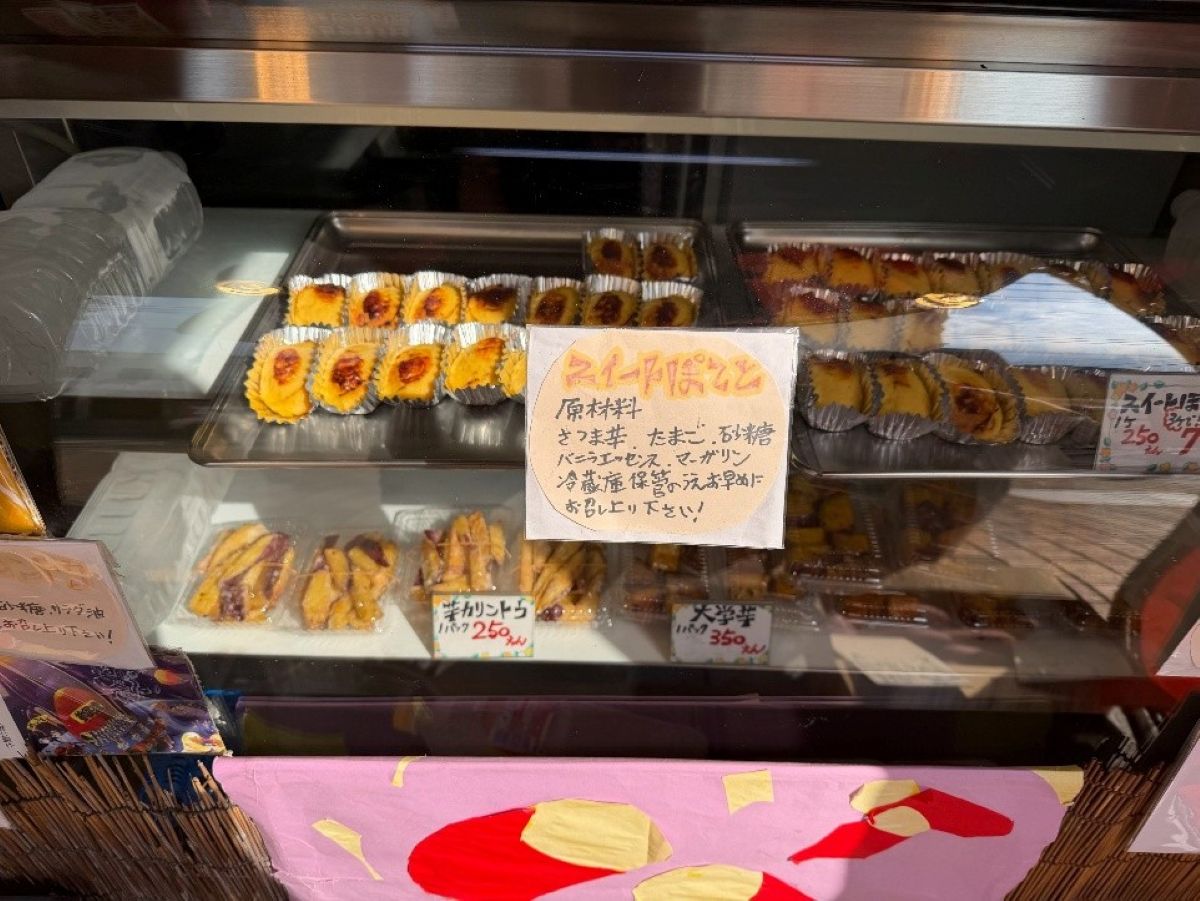 定番スイーツは3種類で、スイートポテト(1個250円)、大学芋(1パック350円)、芋カリントウ(1パック250円)があります。どれも冷めても美味しい状態であるように、工夫を重ねて今に至っています。
