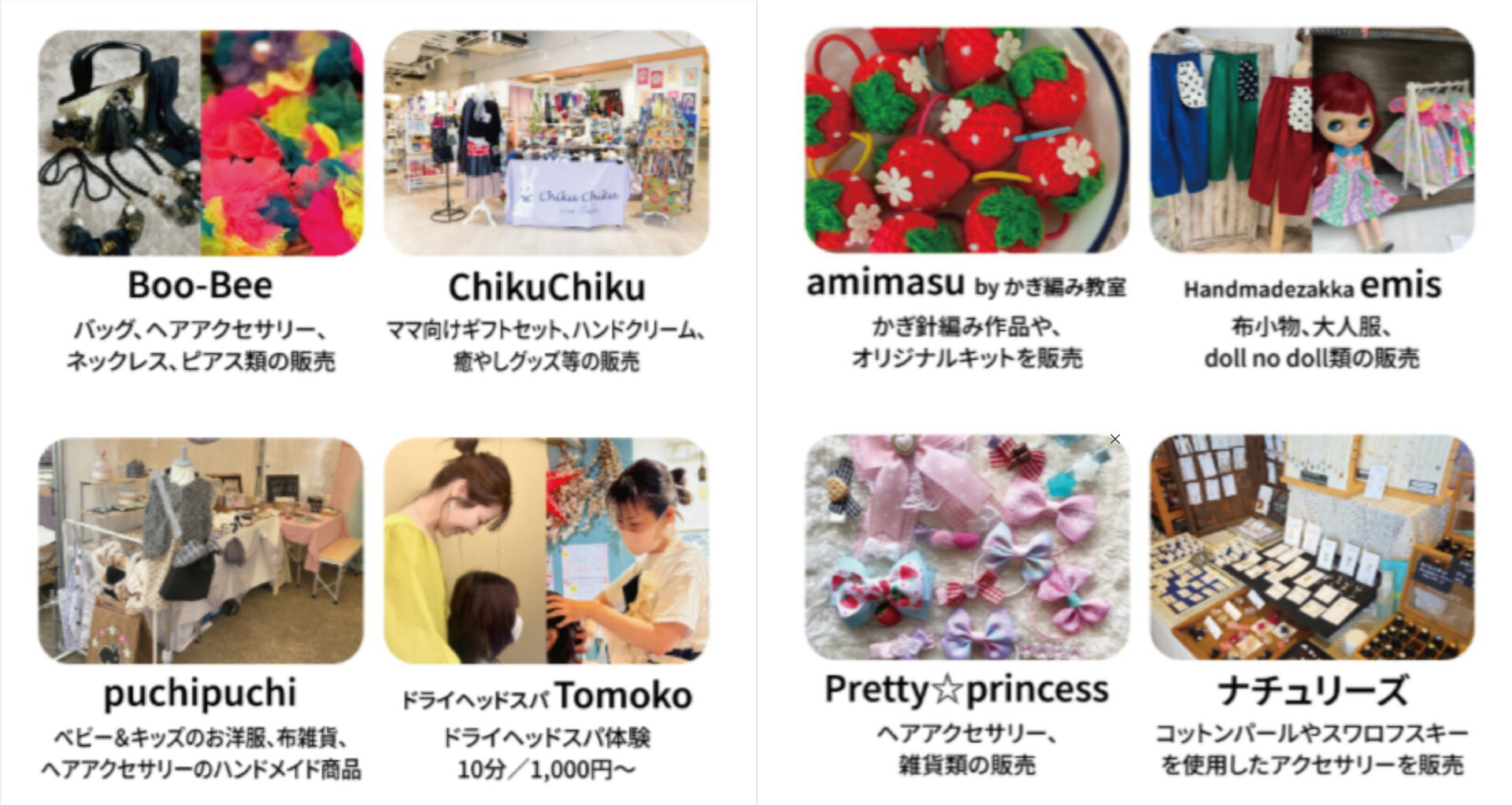 ハンドメイド雑貨やアクセサリー、癒やしグッズなどが並ぶ「ママのごほうびマルシェ」も実施。子どもだけでなく、大人もゆっくり楽しめるエリアとなっています。