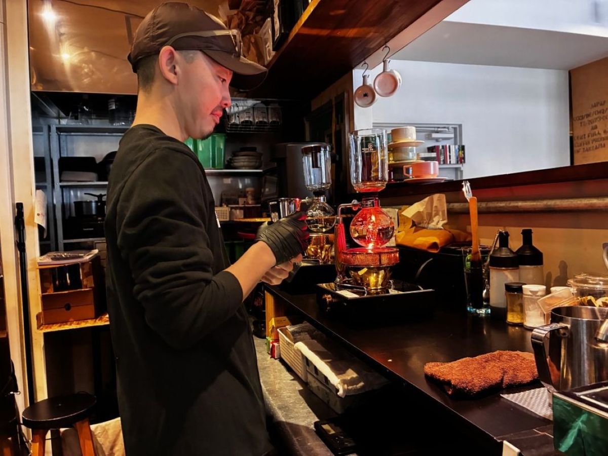 コーヒー豆は定番のものと季節のものがあり、いつ訪れても違う種類が選択可能。店内では、サイフォンでコーヒーが提供されます。