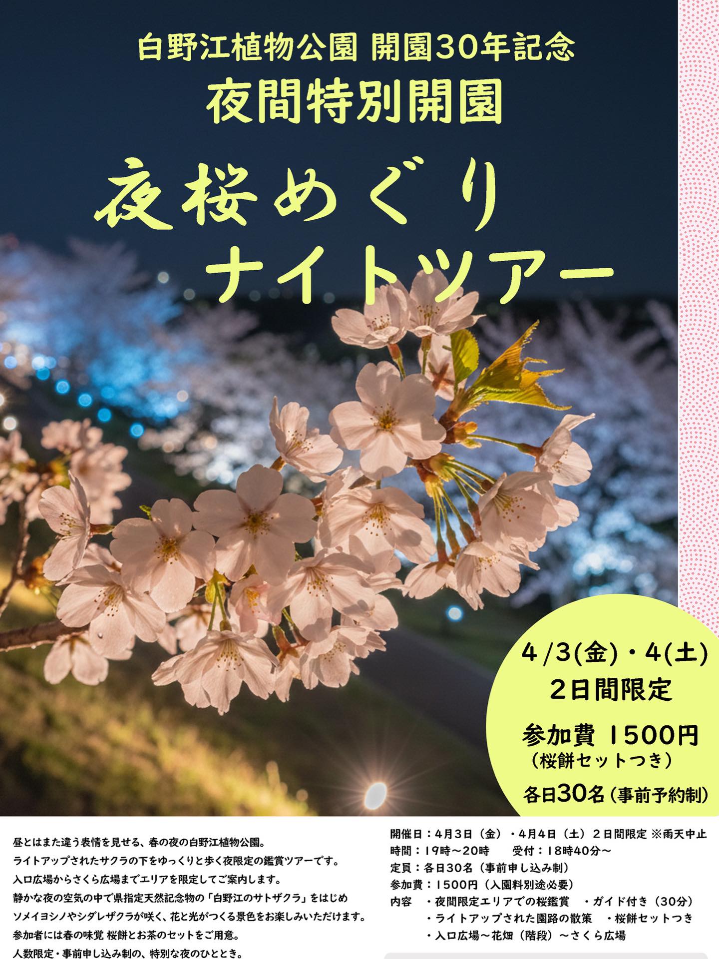 ■内容:夜間限定エリアでの夜桜鑑賞、ガイドつき(30分)、桜餅つき