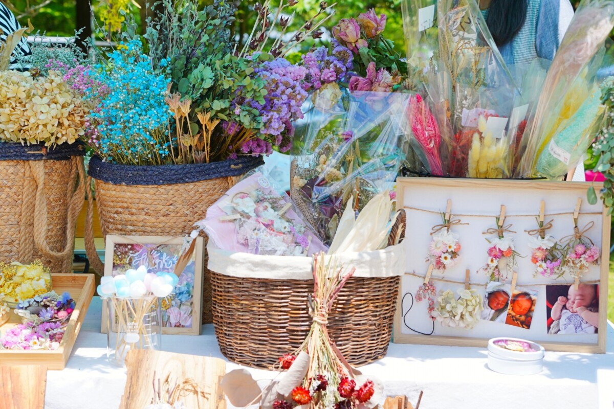 「KOKURA Castle&Park MARKET」では、ハンドメイドのアクセサリーや雑貨、オーガニックボディアートなど多彩なお店が並ぶマルシェを満喫できます。
