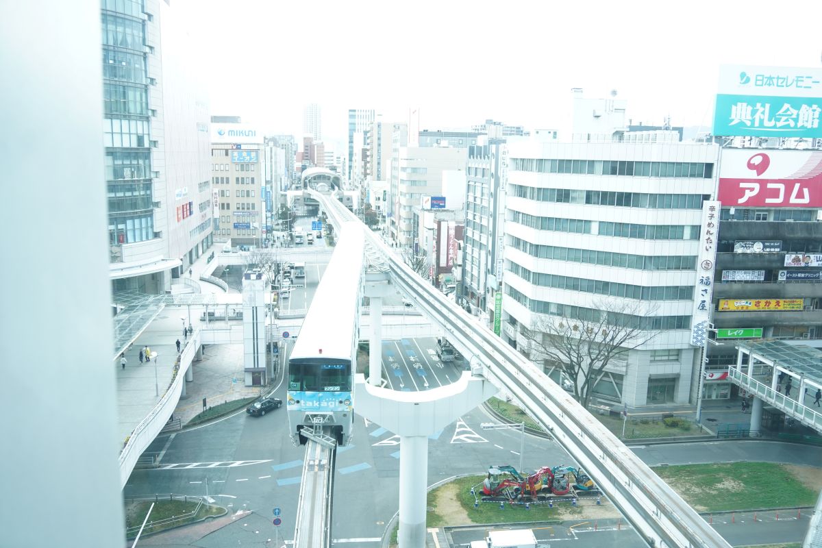 窓際からは小倉駅を行き交うモノレールの景色も楽しめます。