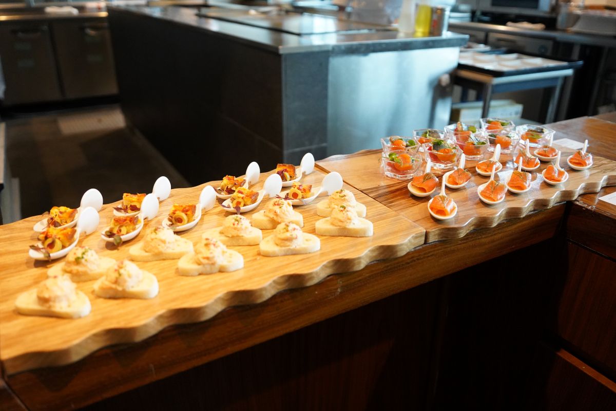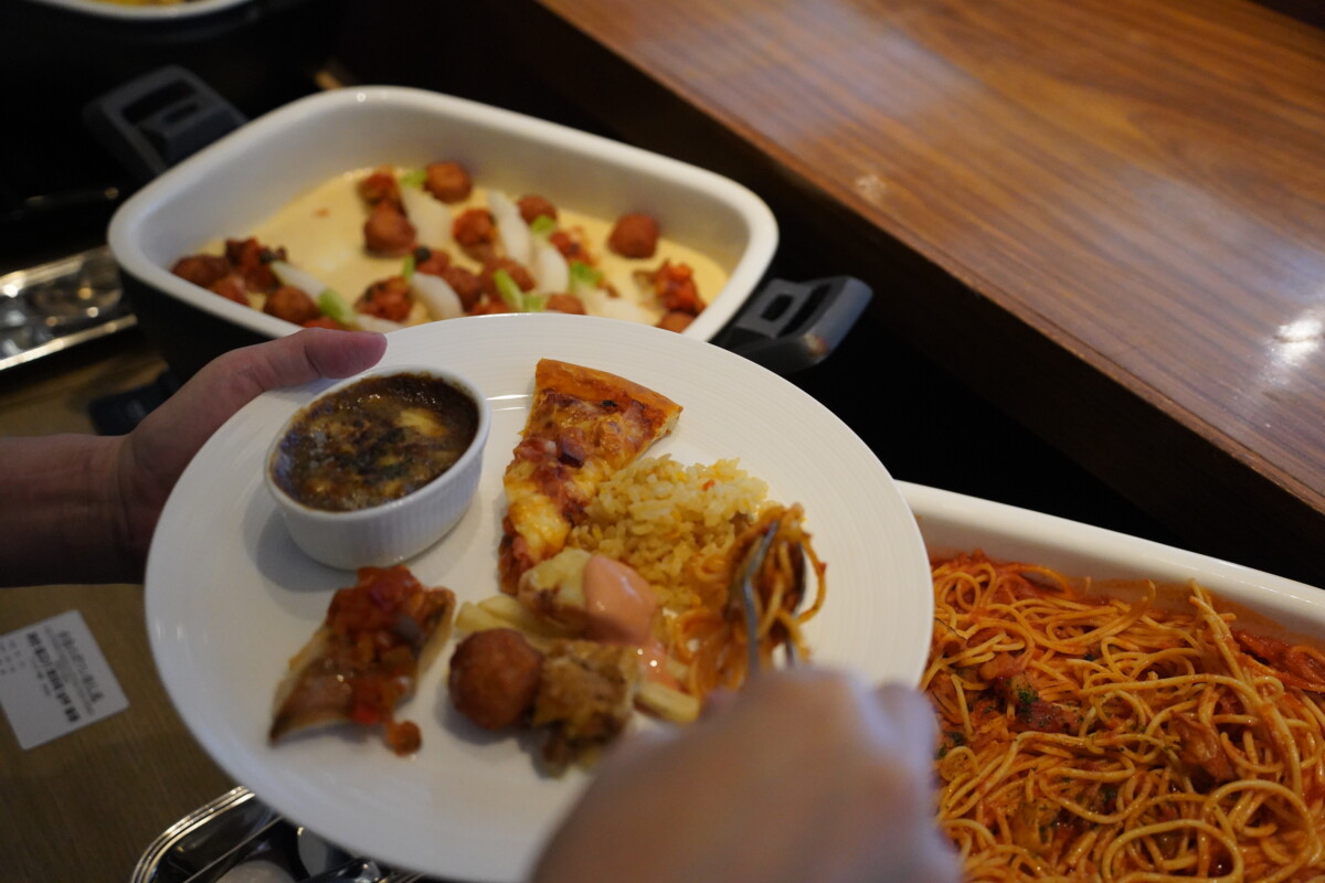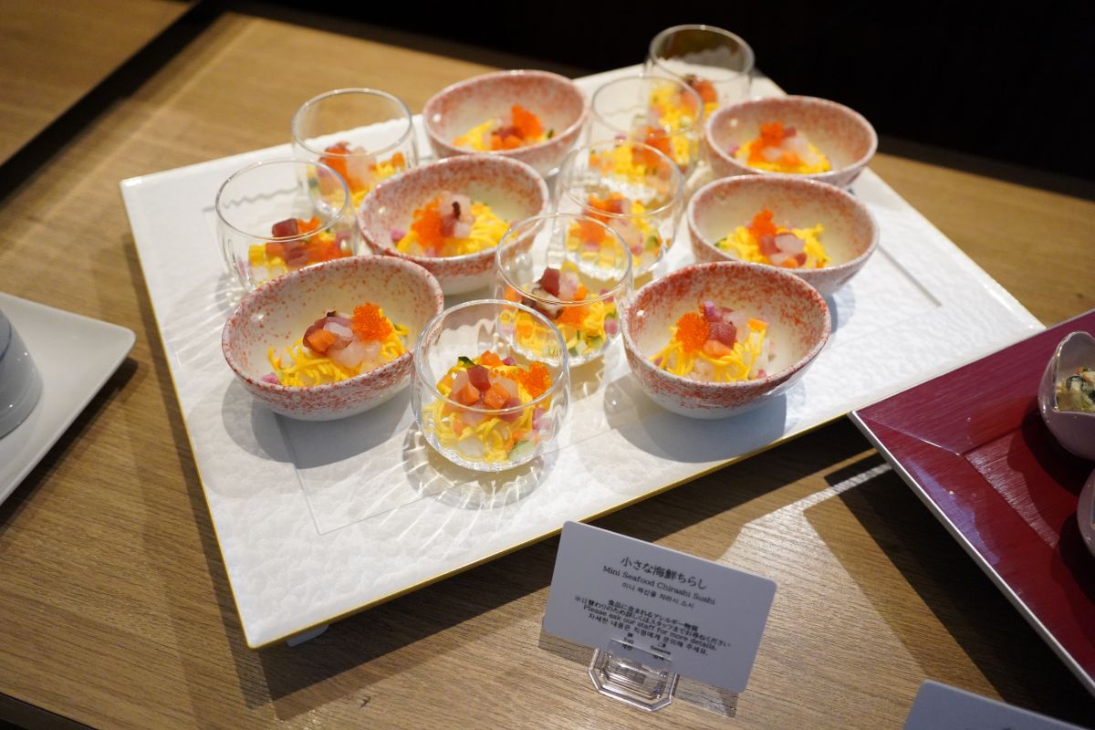 和食は小鉢スタイルのため、盛り付けるだけで華やかな一皿に。ライブキッチンは、提供時間が固定されているためタイミングを見て取りに行くのがおすすめです。