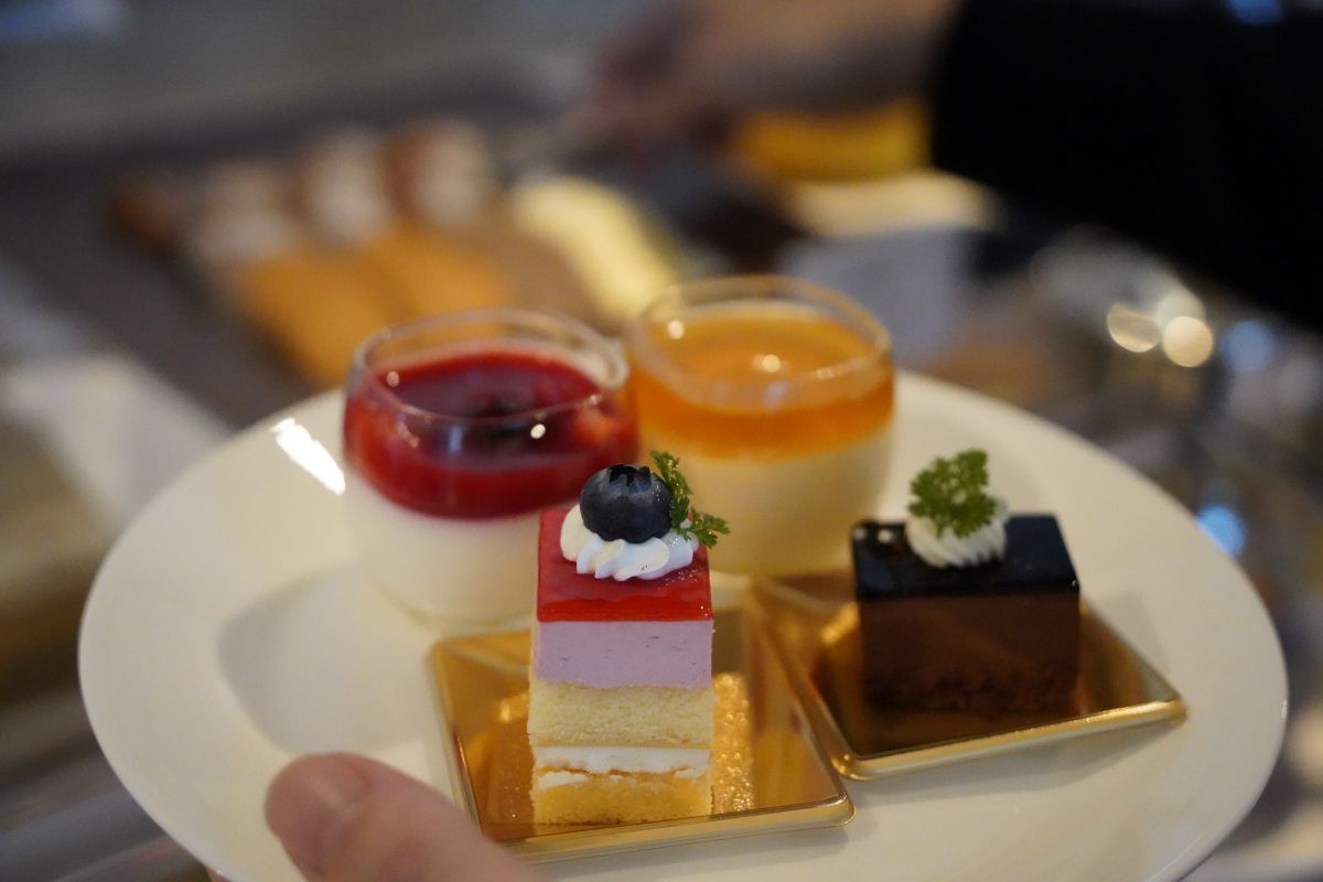 デザートはゼリーやムースを中心にセレクトし、マンゴースムージーで締め。