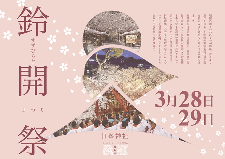 日峯神社(北九州市八幡西区浅川日の峯1-8-8)で3月28日と29日の2日間、「鈴開祭」が開催されます。