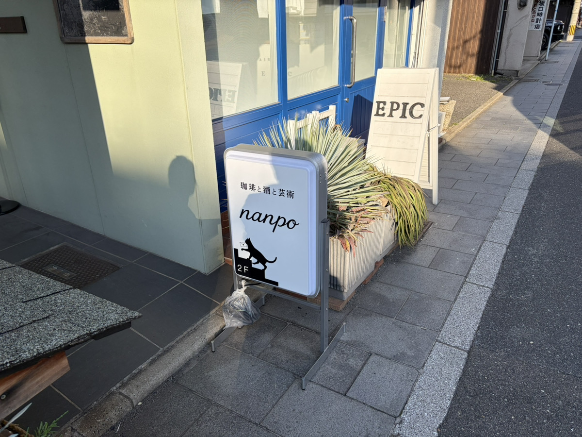 JR西小倉駅そば、TMビルの2階にカフェ「nanpo 珈琲と酒と芸術」があります。