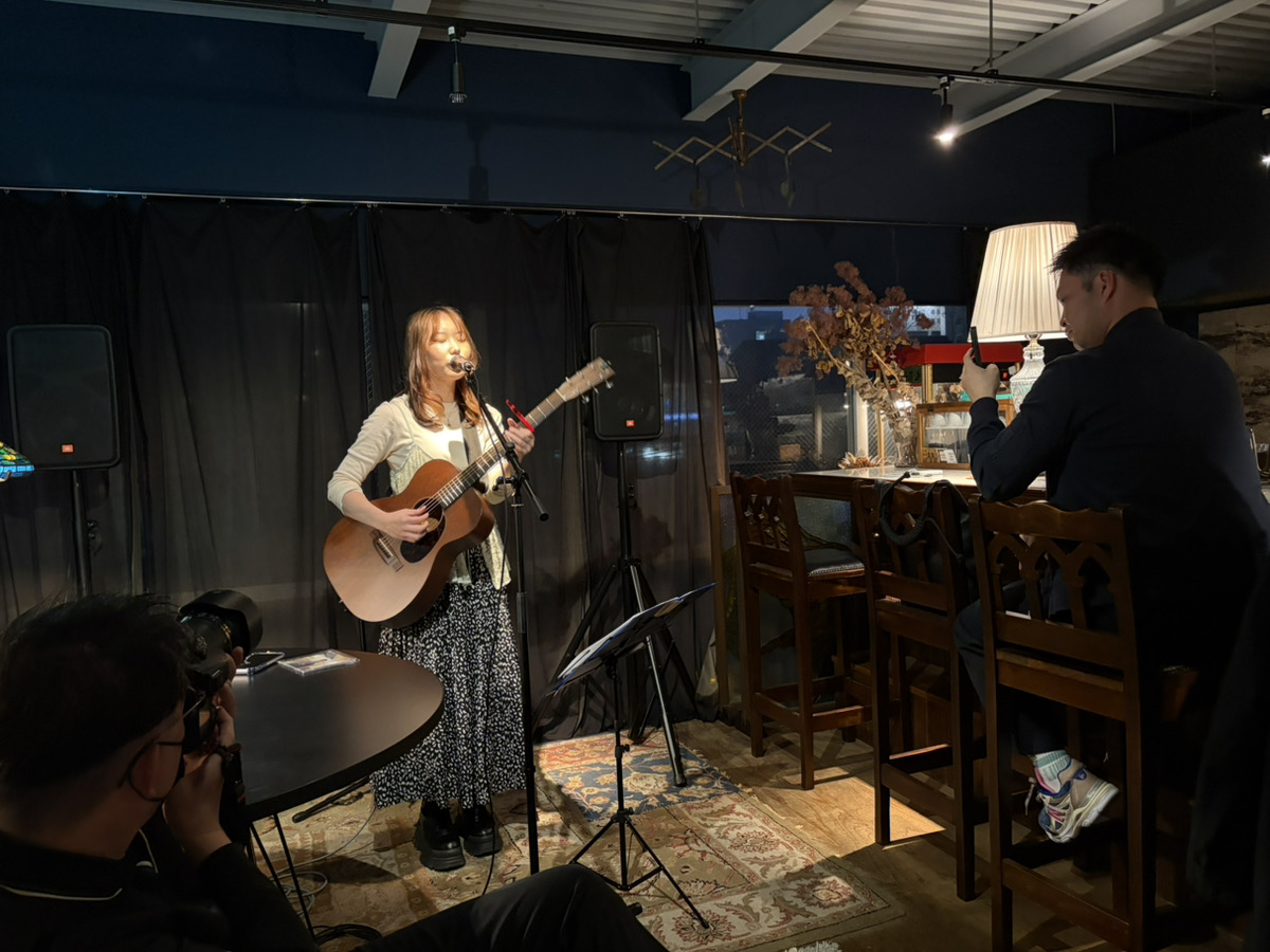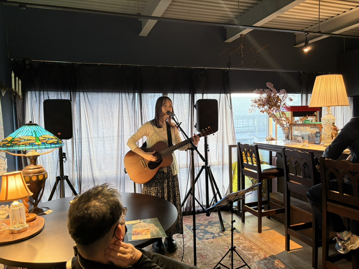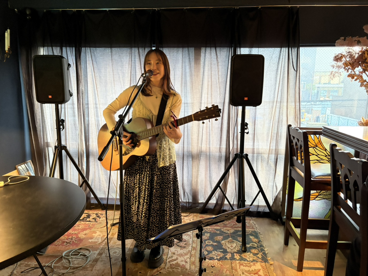 今日のようによくカフェで、ライブをさせていただいています。あとThreadsとかInstagramで声を掛けて貰い、雰囲気が良ければライブしています。他は自主企画ライブですね。