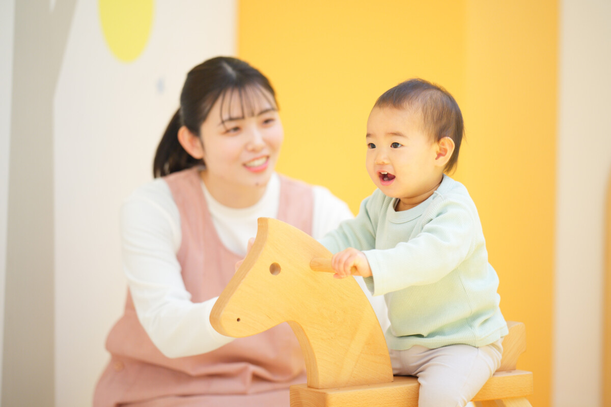 のりものでGO!GO!は、自分の足で進んだり止まったりする「ラコーサ」、坂を下って上って進む「アップダウンコースター」のほか、「引き車」や昔懐かしい「木馬」に乗ることができます。