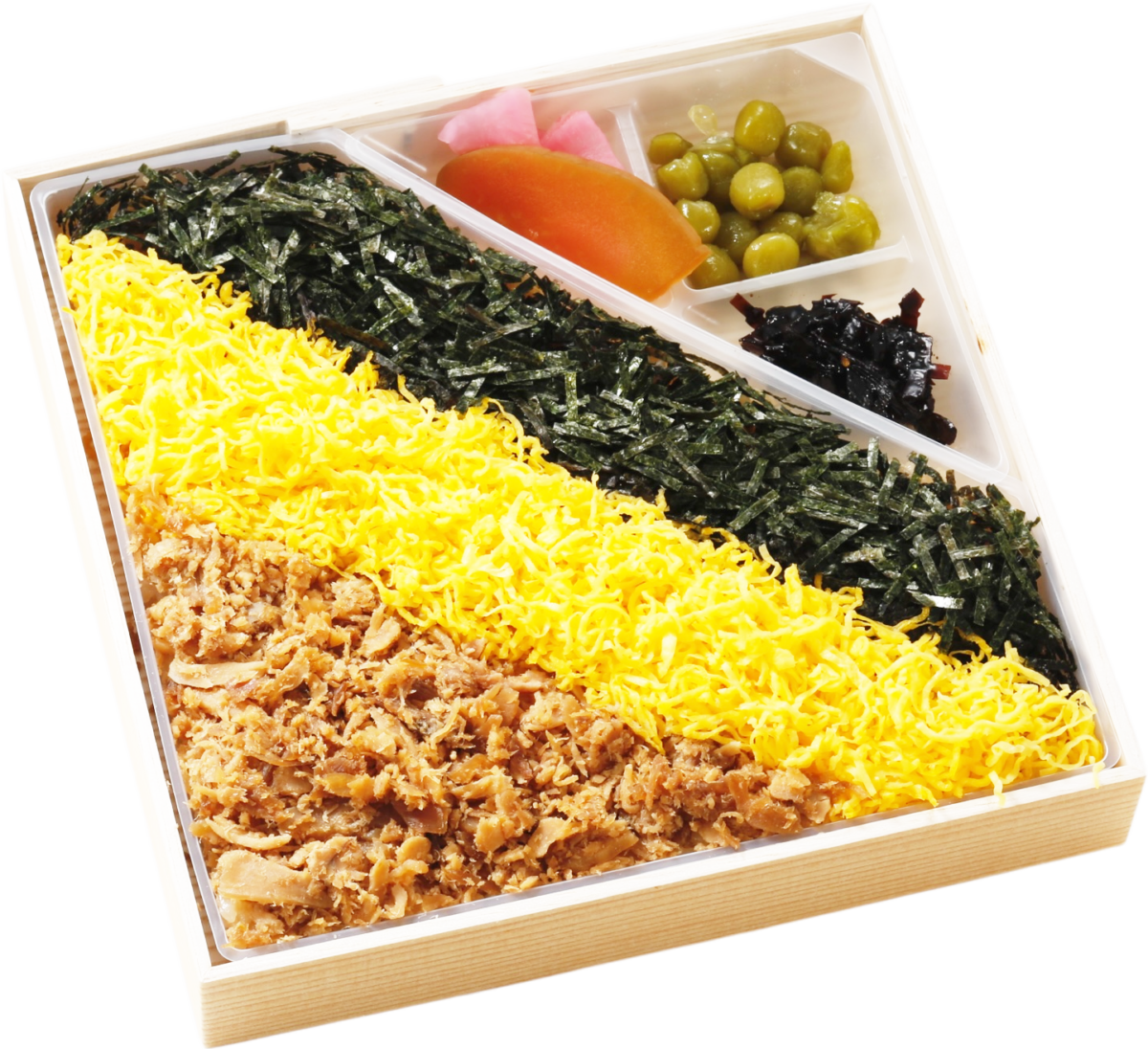 弁当箱には、通気性に優れ食品の水分を吸収する性質がある経木の折り箱を使用。木が本来持っている抗菌作用が働くので食品の鮮度が保たれるそうですよ。
