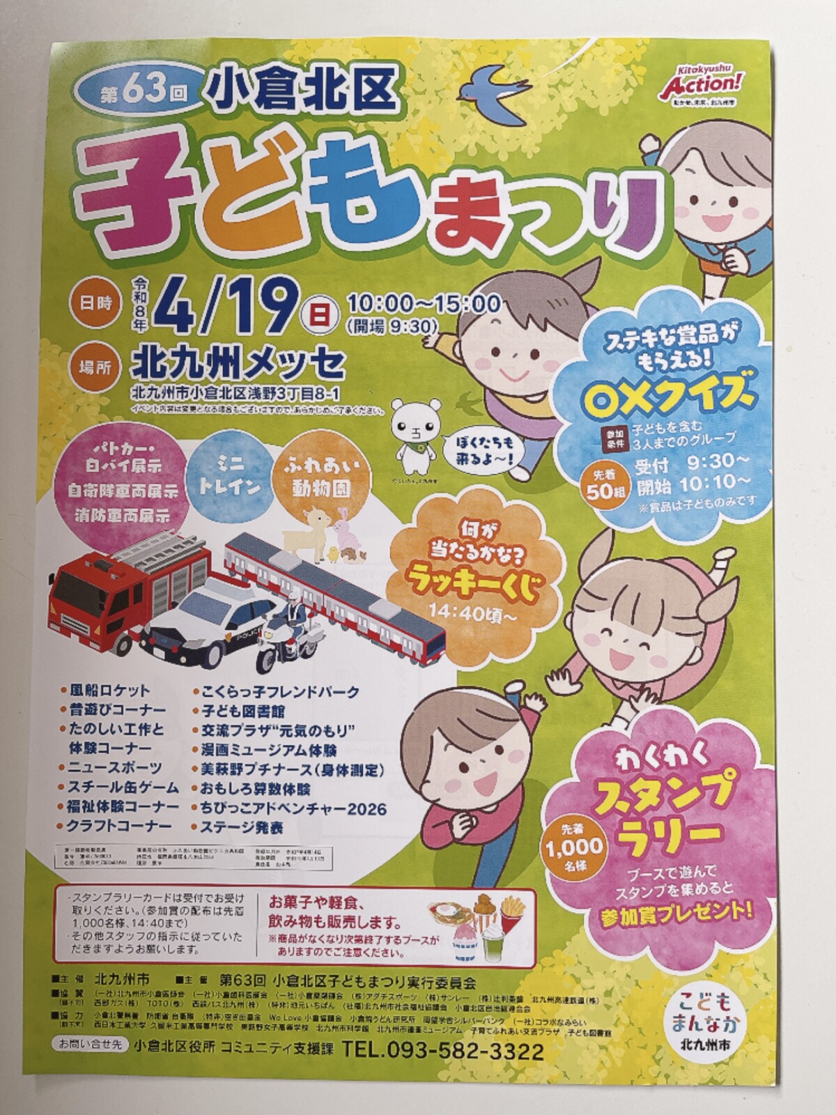 北九州メッセ(北九州市小倉北区浅野3-8-1)で4月19日、「第63回 小倉北区子どもまつり」が開催されます。