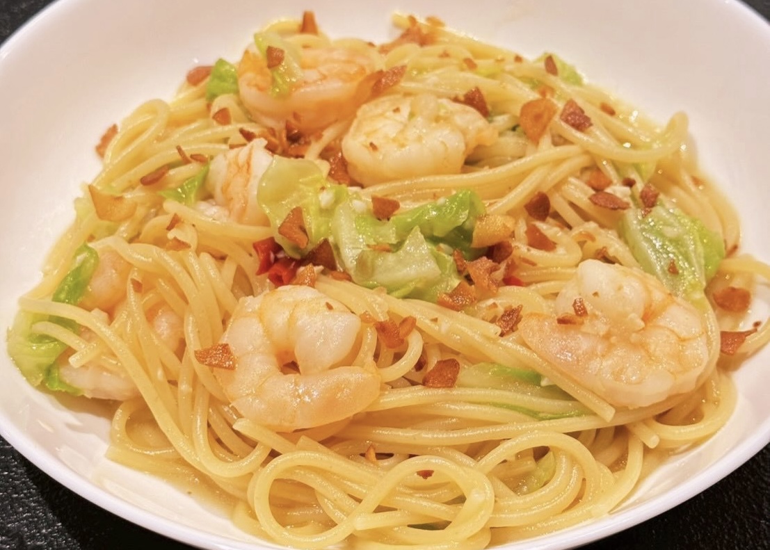 (画像は春のランチメニュー「エビと春キャベツのペペロンチーノ」)