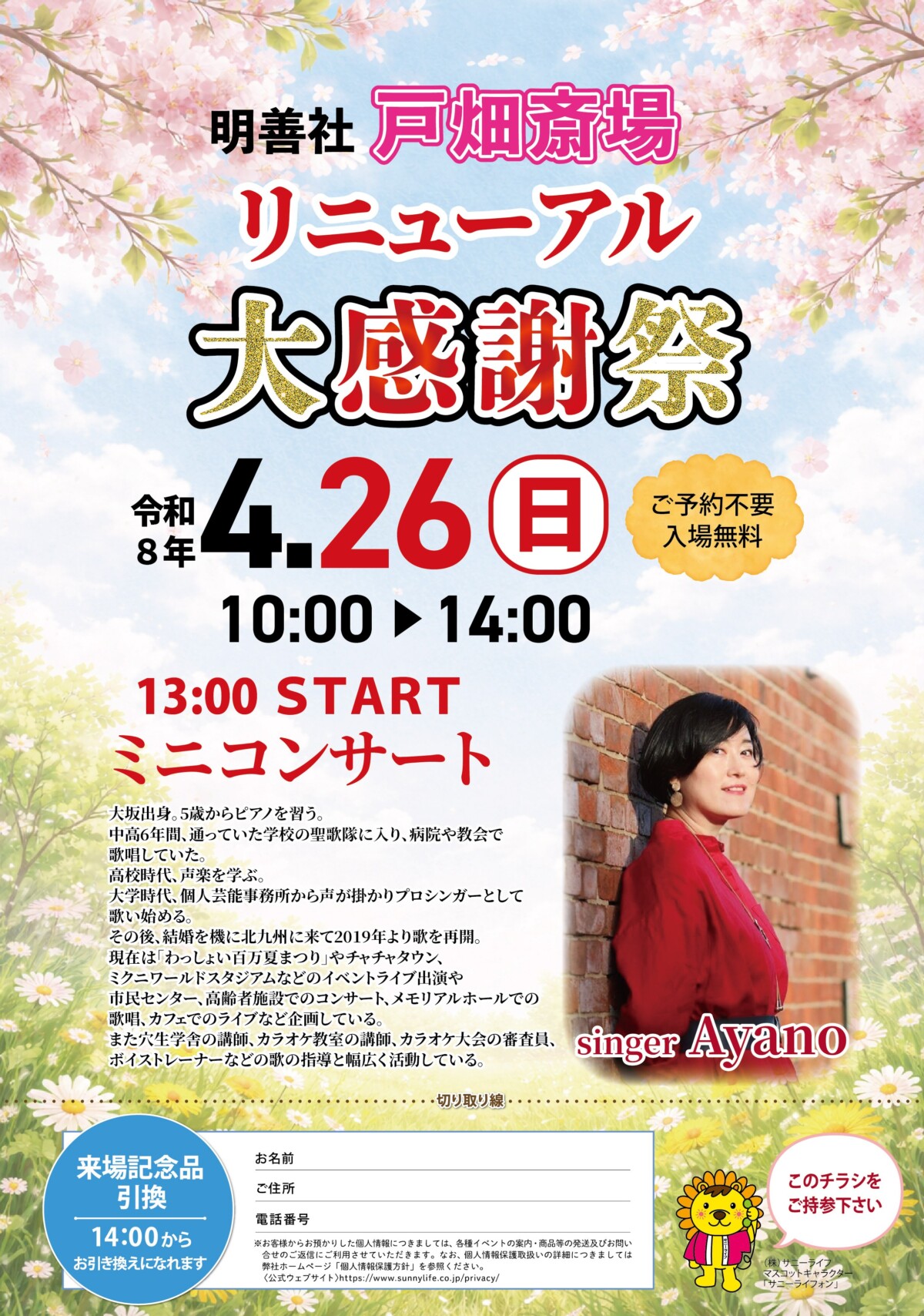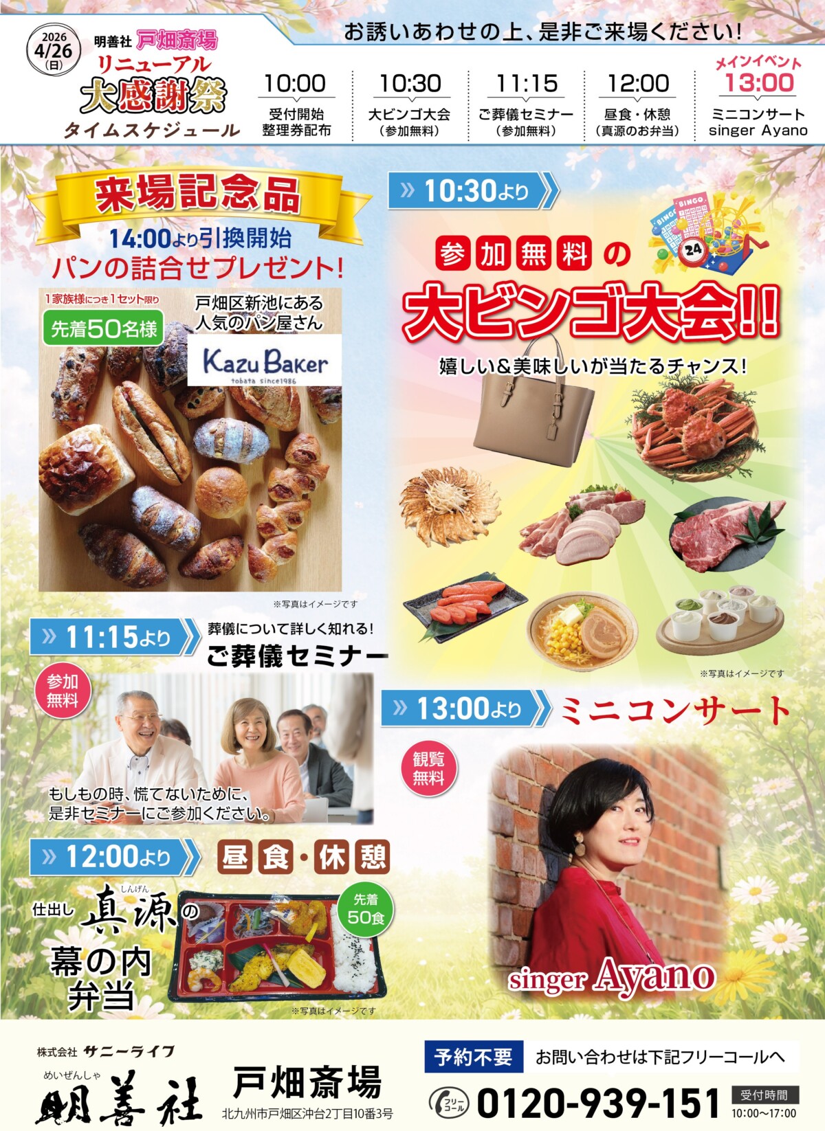2026年4月26日(日)10:00~14:00、日頃のご愛顧に感謝を込めて、 明善社 戸畑斎場にてリニューアル「大感謝祭」を開催いたします!