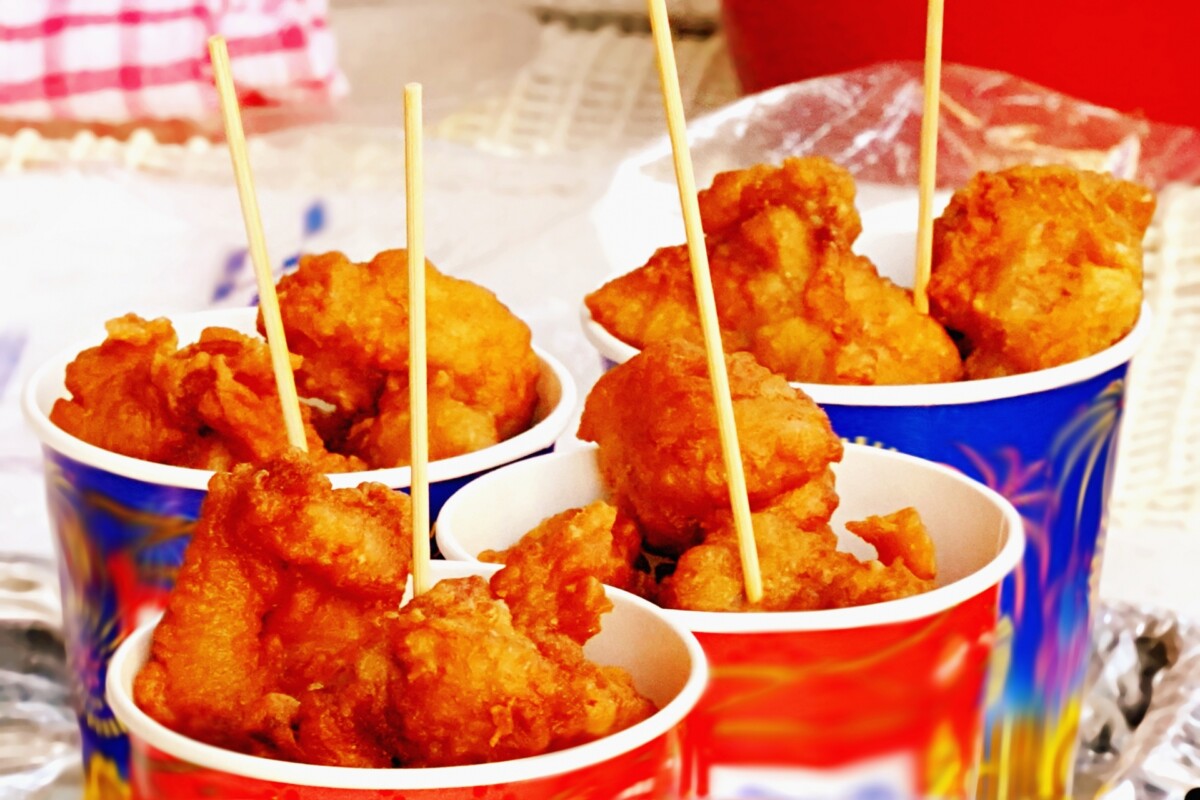かしわ屋くろせの「唐揚げ・チュロス」、肉の谷口の「唐揚げ・コロッケ」、鳥華族の「唐揚げ」、ありがたいもの「揚げ芋」のほか、キッチンカーも出店。ハイボールは、文化商店・アカネコ堂・人形の田中・弘美屋・花田佛具店などの多彩な店舗が提供します。