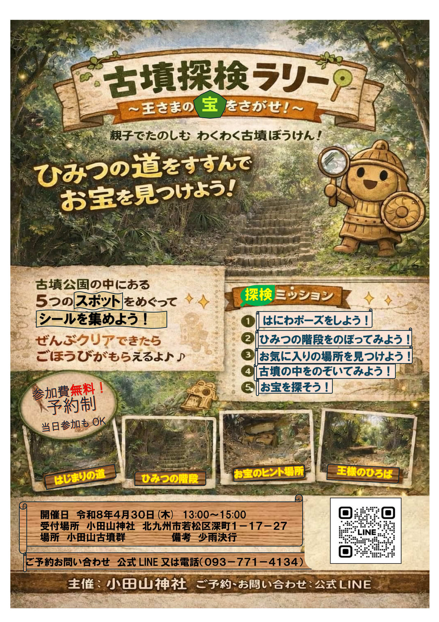 小田山古墳群(北九州市若松区深町1-17-27)で4月30日、宝探し企画「古墳探検ラリー 王さまの宝をさがせ!」が開催されます。