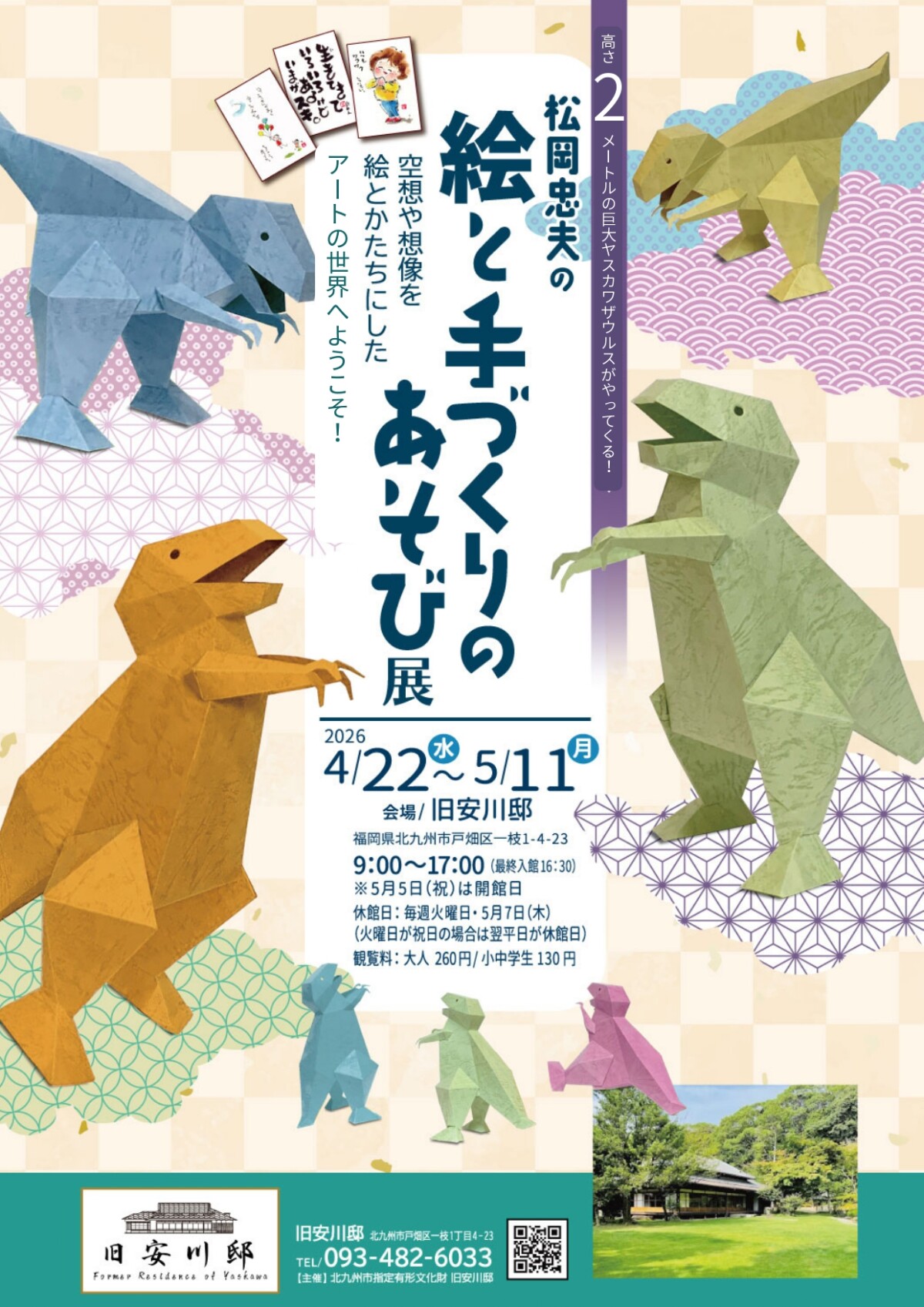 4月22日(水)~5月11日(月)、高さ2mのヤスカワザウルスの親子をはじめとするペーパークラフトアートを展示中です。空想や想像を絵とかたちにしたアートの世界が待っています。ご家族で楽しめる体験型の展覧会です。