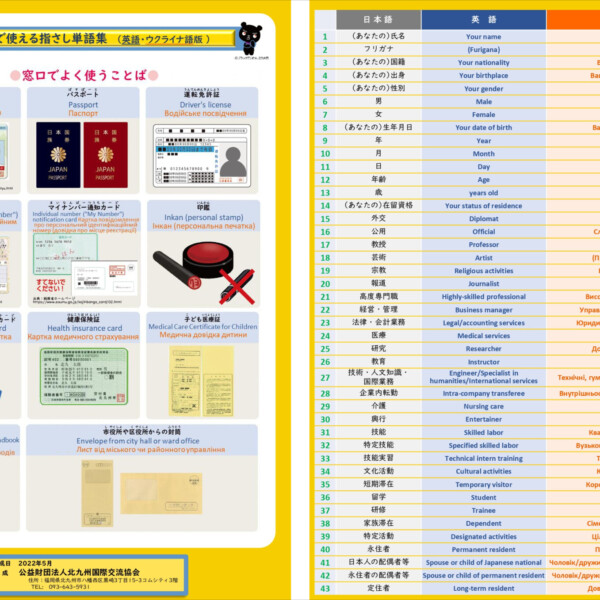 (公財)北九州国際交流協会(北九州市八幡西区黒崎3-15-3コムシティ3階)が令和2年度に作成した「窓口で使える指さし単語集」に...